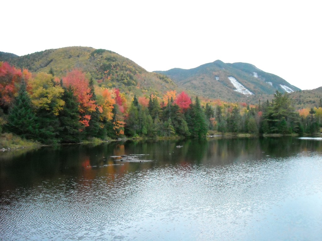 We began our ascent of Marcy at 8:00 am on a cloudy morning in September with our friend Blake, who was training in nearby Vermont with the National Guard Biathlon Team. Blake had done some serious hiking in the Beartooths of Montana the month previous with our mutual friend Bjorn and was familiar with rough terrain and big vertical days as well. The leaves were in full peak and shades of yellow, orange, and red surrounded us as we gradually gained elevation on the two miles to Marcy Dam, the first notable landmark and where our loop began.