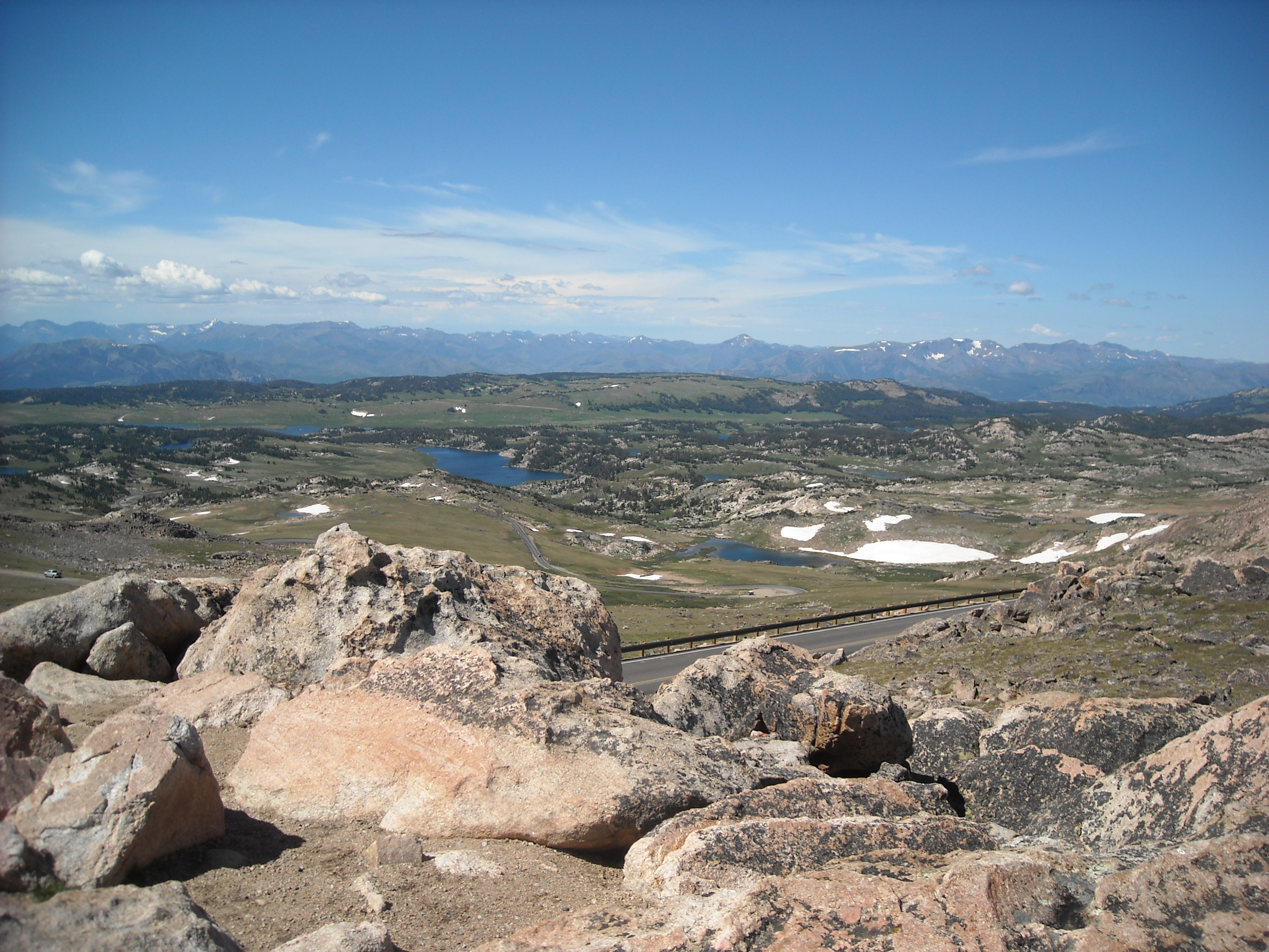 Next up we drove the Beartooth Highway over Beartooth Pass. Between Erik’s broken thumb and my bro’s rough stick driving skills, it was up to me to navigate the hairpin turns in our manual Volkswagen Jetta. The views were stunning. At the top we realized we were at high elevation and we might as well stay at the Island Lake National Forest Campground (about 9,500 feet) to begin our acclimatization. From here we did a loop hike, up to Beauty Lake and then to Beartooth Lake, albeit half of it was on the Beartooth Highway which wasn’t great.