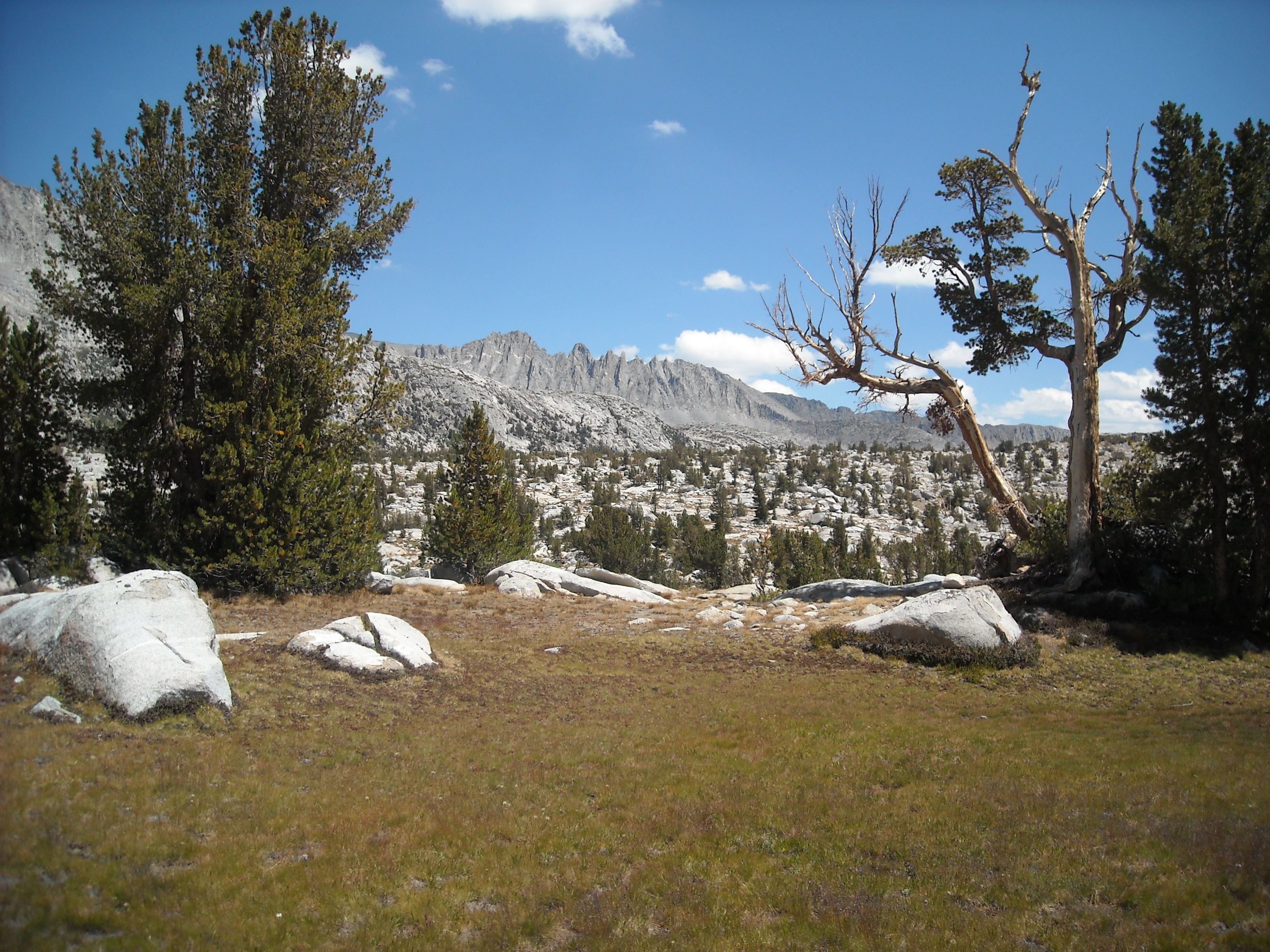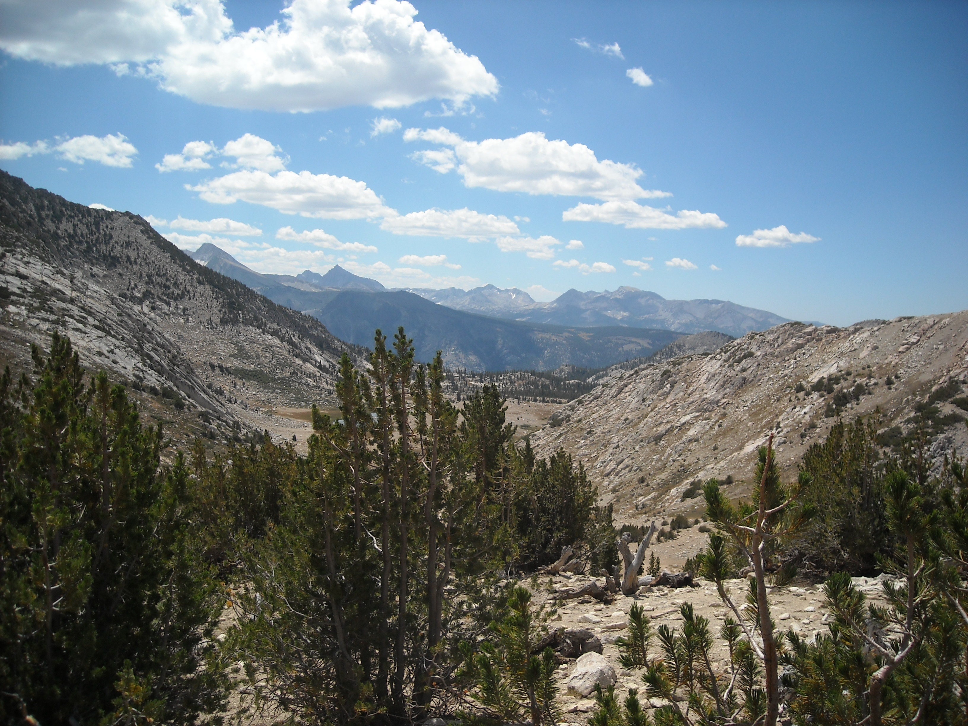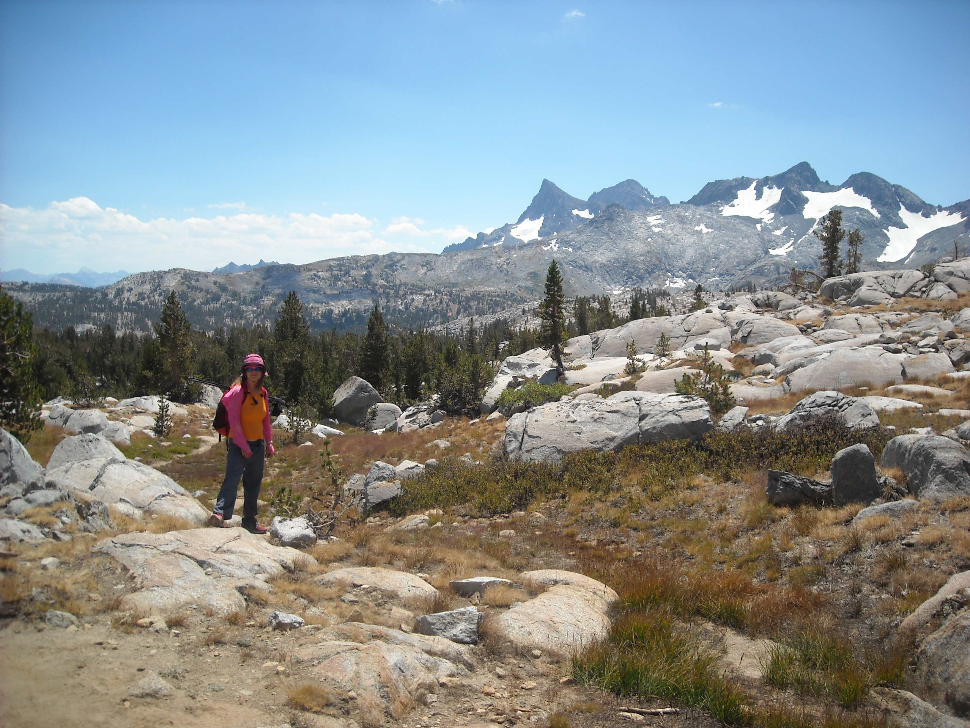 We had more mostly good weather and we hoped the big thunderstorms, especially anything like we had on Muir Pass, were well behind us. This day we got some different scenery as we continued south.