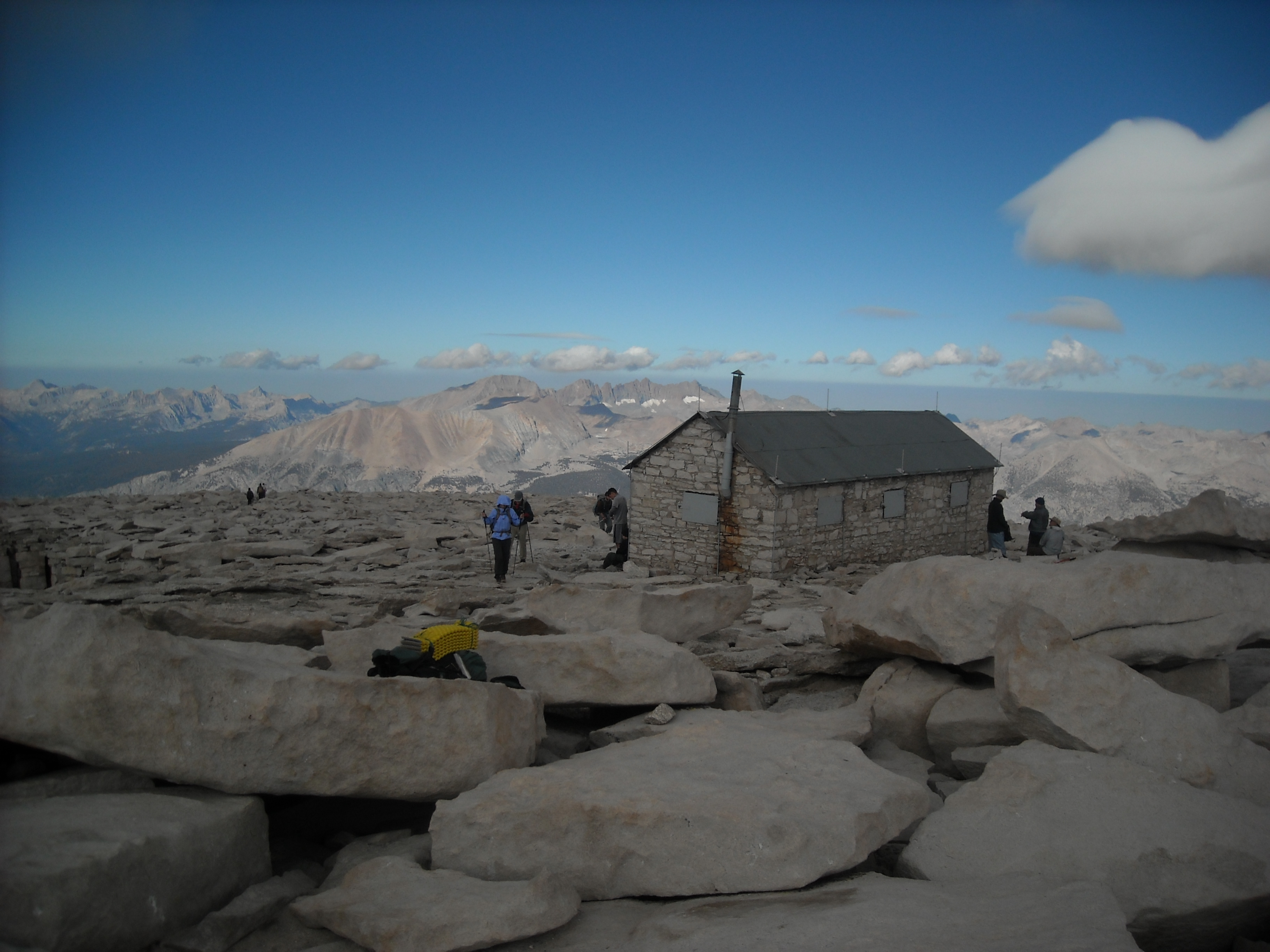 We took our time on top, enjoying the views after hiking nearly 300 miles to get there. The summit was broad and had a stone hut on top. But alas, we still had some miles to go so headed back down.