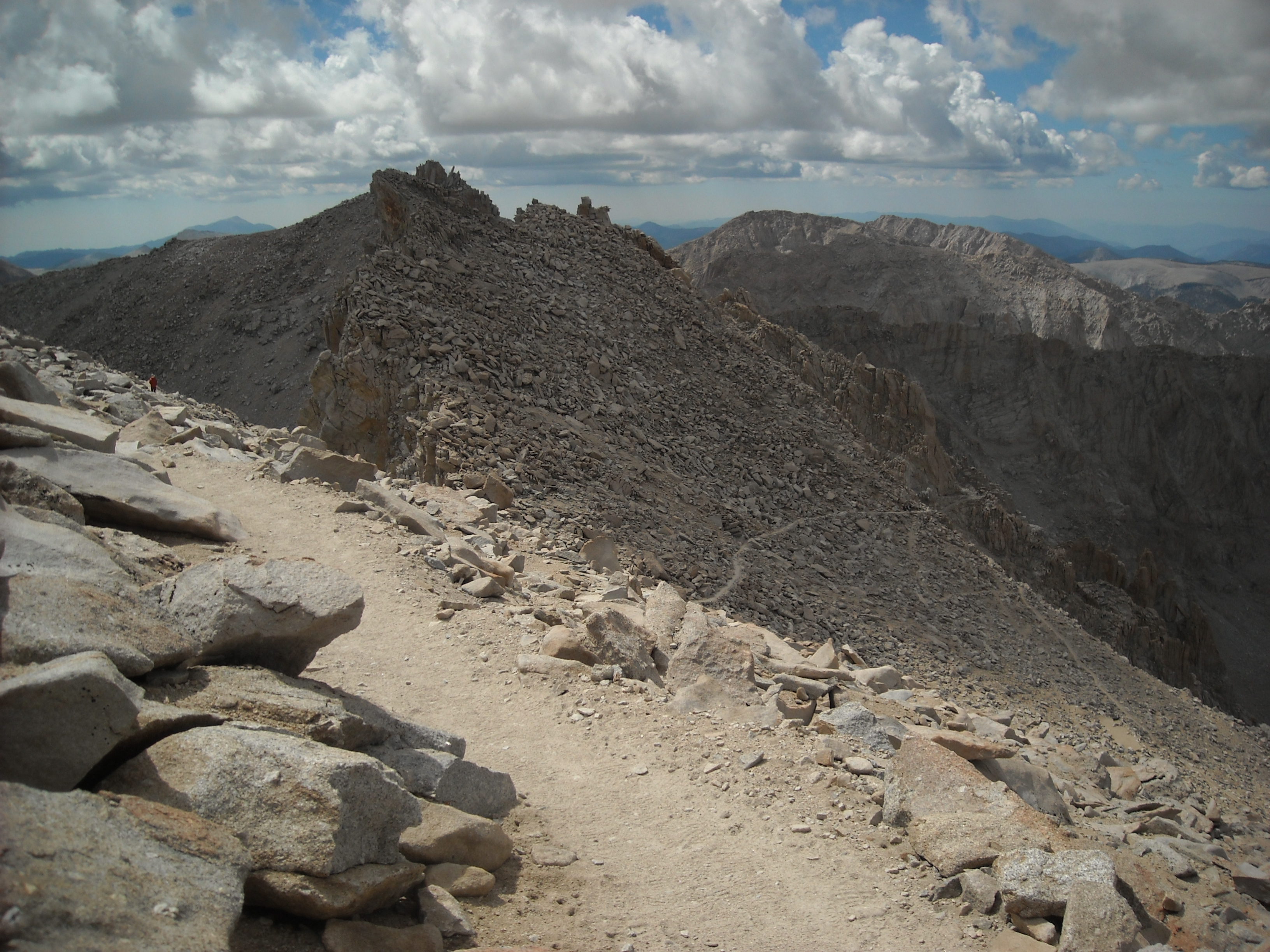 Once we got to Whitney Junction and the trail on the other side of the mountain came in from Whitney Portal, we began a northerly traverse. Here the trail was mostly in good shape but there were still some big rocks and small rocks to navigate. The trail didn’t gain much more elevation and we made good time to the summit of Whitney and none of us bonked.