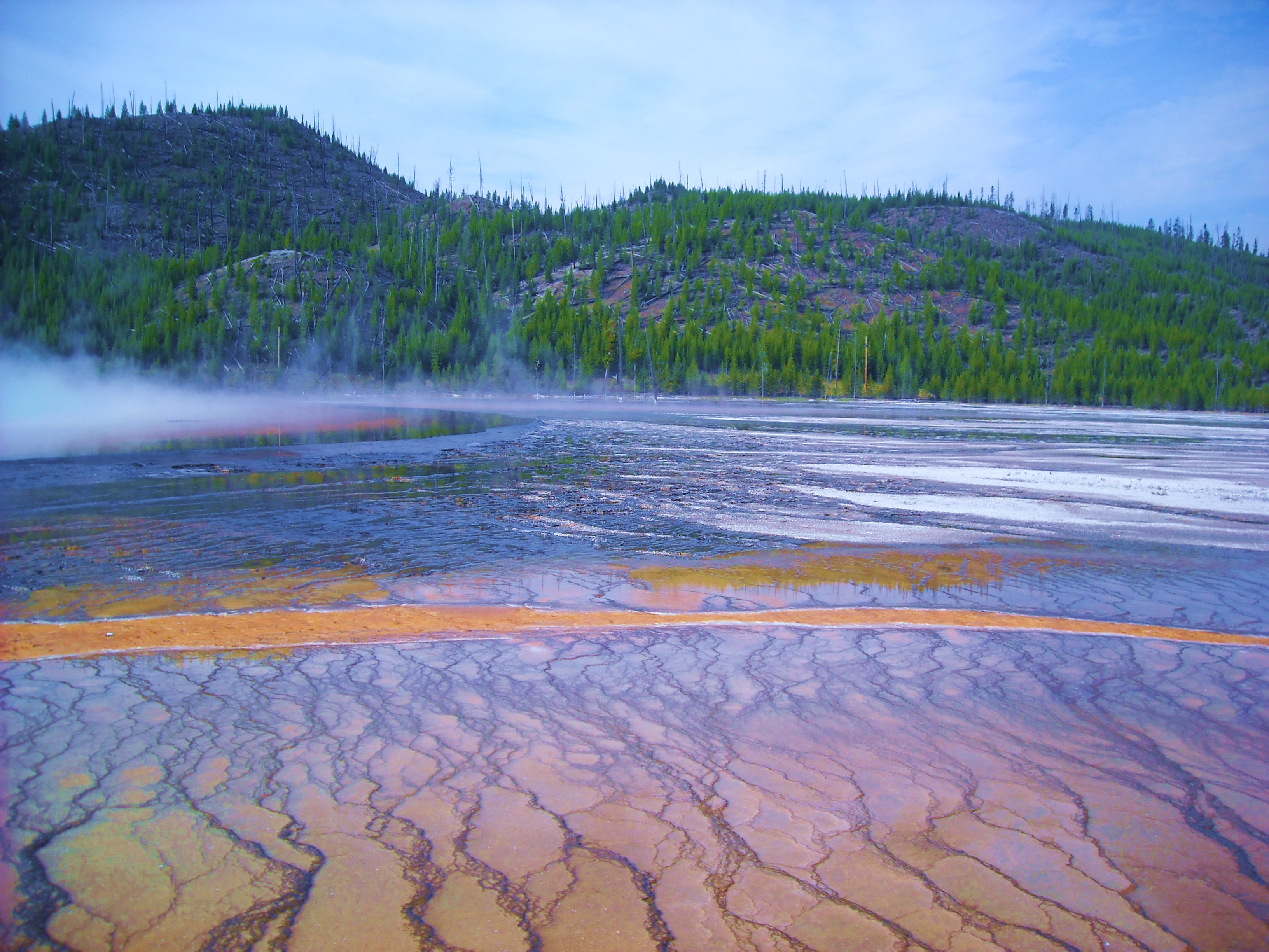 Then we got another backcountry permit, this time just a short hike to Mallard Lake, where we set out from the Old Faithful parking lot. As we hiked and from our campsite, we could see steam rising from a few thermal features.