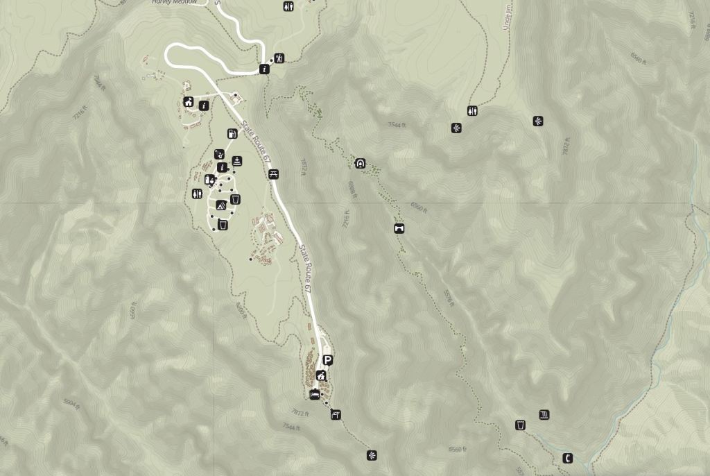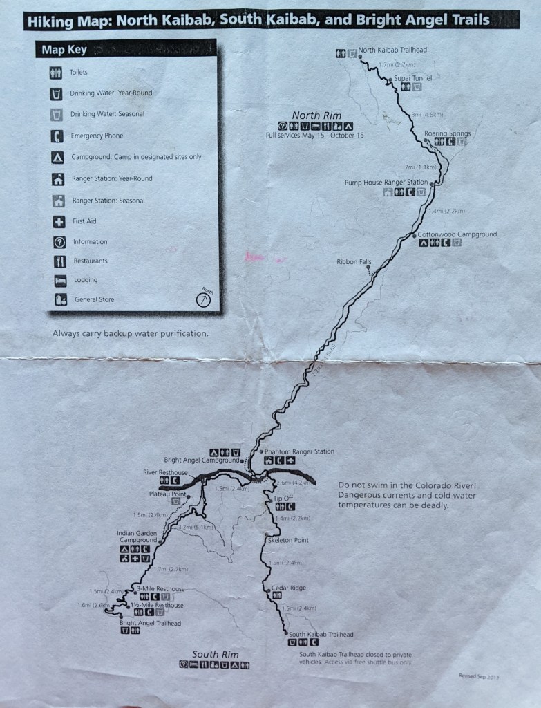 Better map that shows notable locations and relative distances of the rim-to-rim trails.