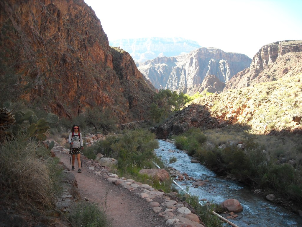 After crossing the Colorado River on the farther west bridge, we dawdled a bit at the Phantom Ranch area before starting our slow ascent of the North Rim. We filled up on water and noted that down in the canyon it was markedly warmer than up on top.