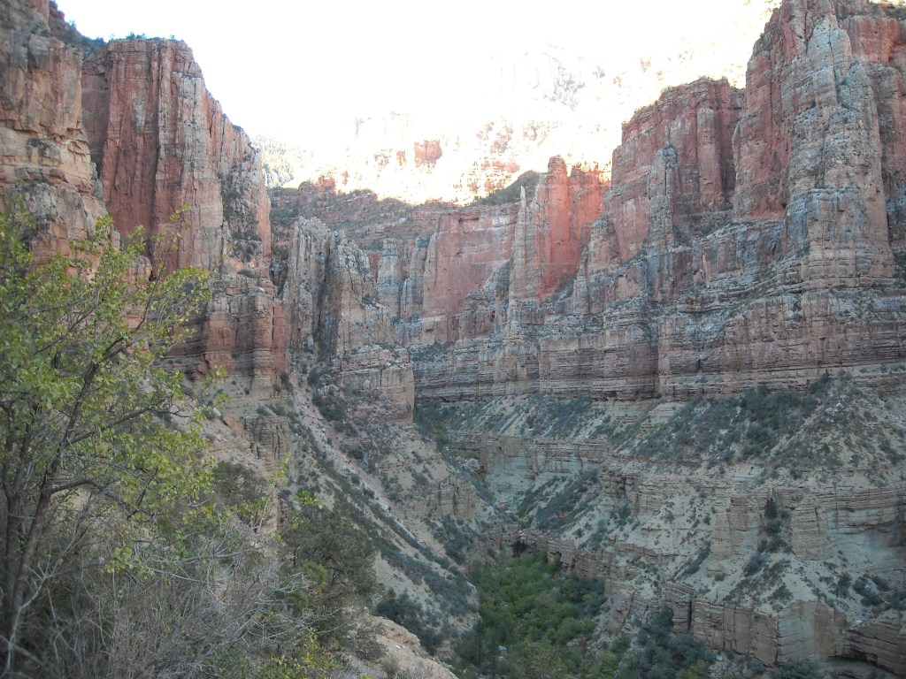 Getting into the trees. We were in the shade for almost the entirety of this trail but the opposite side of the canyon was getting good sunlight.Below the Indian Garden Campground we entered into a more intimate side canyon.Erik has we got down lower.
