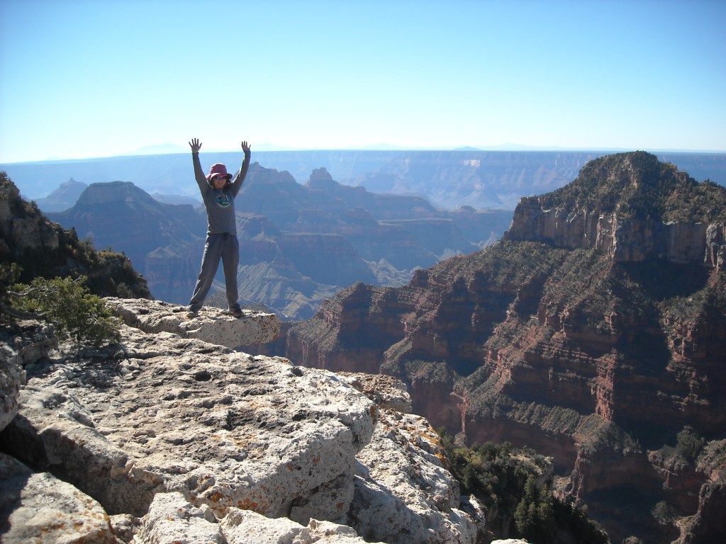 Layover day on the North Rim. We first explored the multiple views of Transept Canyon. This picture is looking towards the South Rim and the San Fransisco Peaks which includes Humphreys Peak that we planned to hike in two more days.On the edge [of glory].Looking towards the South Rim from Bright Angel Point.
