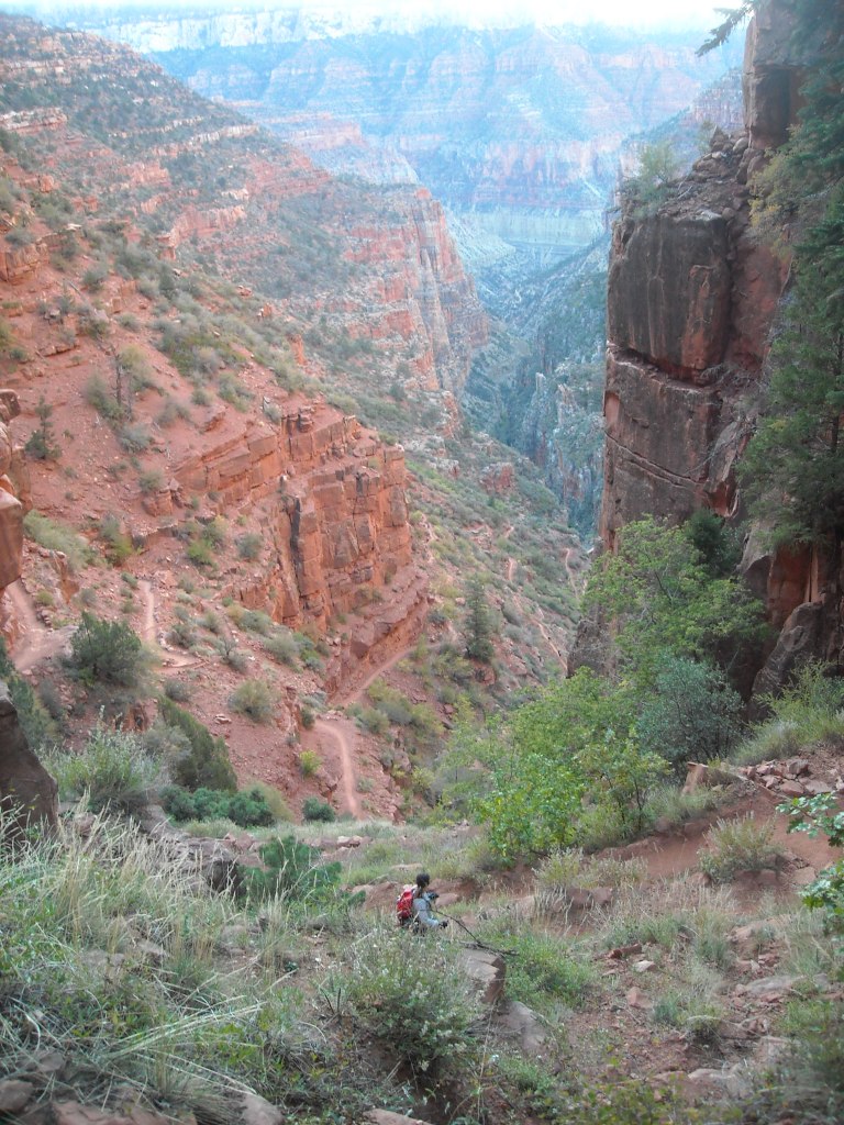 Erik, a switchback or two above me, took this picture looking down on the trail as it makes its way down the Roaring Springs Canyon.