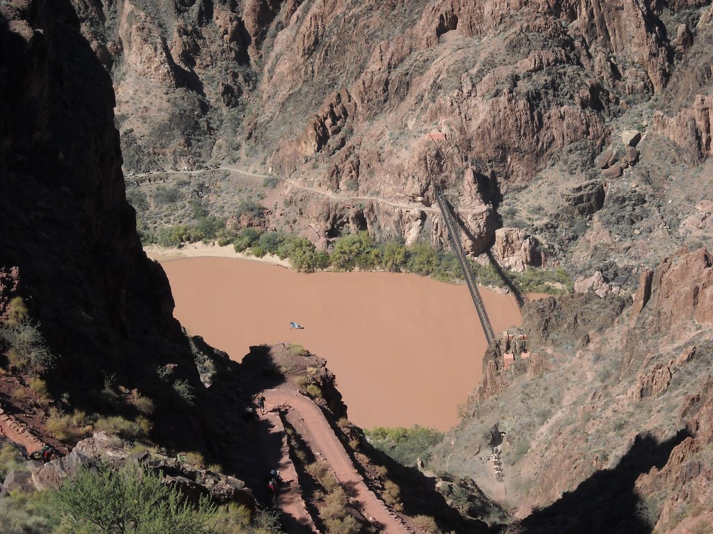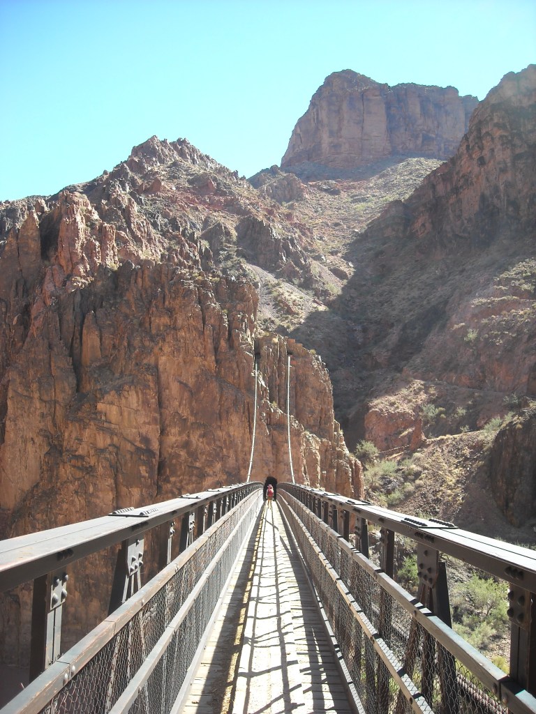 There are only two bridges across the Colorado River in Grand Canyon National Park and they are so close together you can see one from the other. They are both suspension bridges for hikers and livestock.