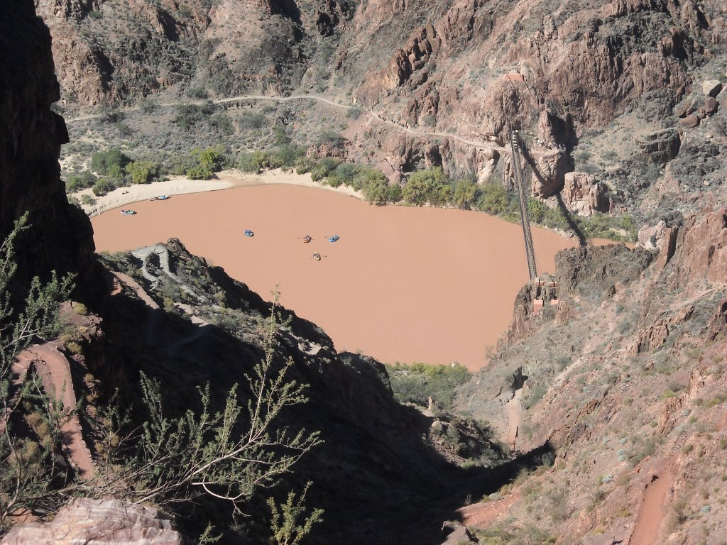 It was only 9.6 miles to the bridge we took across the Colorado River but given the vertical mile descent, our legs were already feeling it and at this point we had done less than half the mileage on the day and still had a vertical mile of climbing.