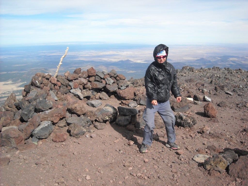 An old volcano could be seen from the top.I had read reports that the summit of Humphreys was really windy. I was posturing very funny here as I braced against the wind. Check out my pants.