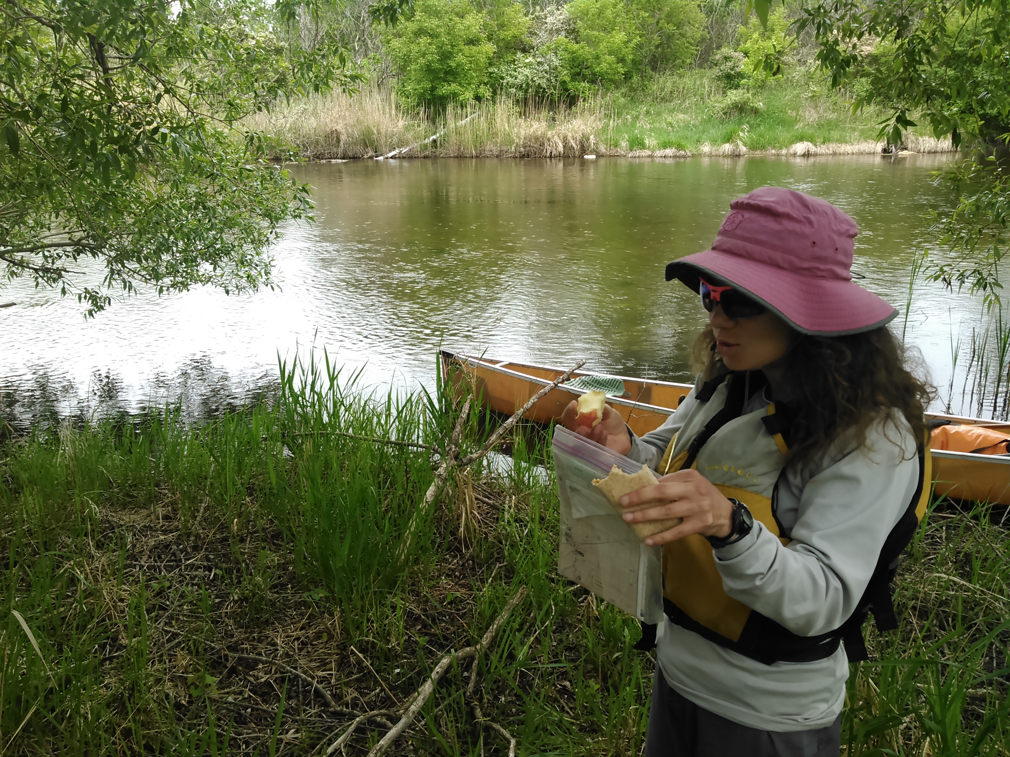 Day three dawned with 55 miles to the Mississippi and a pathetic current. We immediately got to paddling and took our first stop 12 miles downstream at the park in Cambridge. As we got back in the canoe, some fisherman ambled down to the bank and asked “where are you floating to?”
