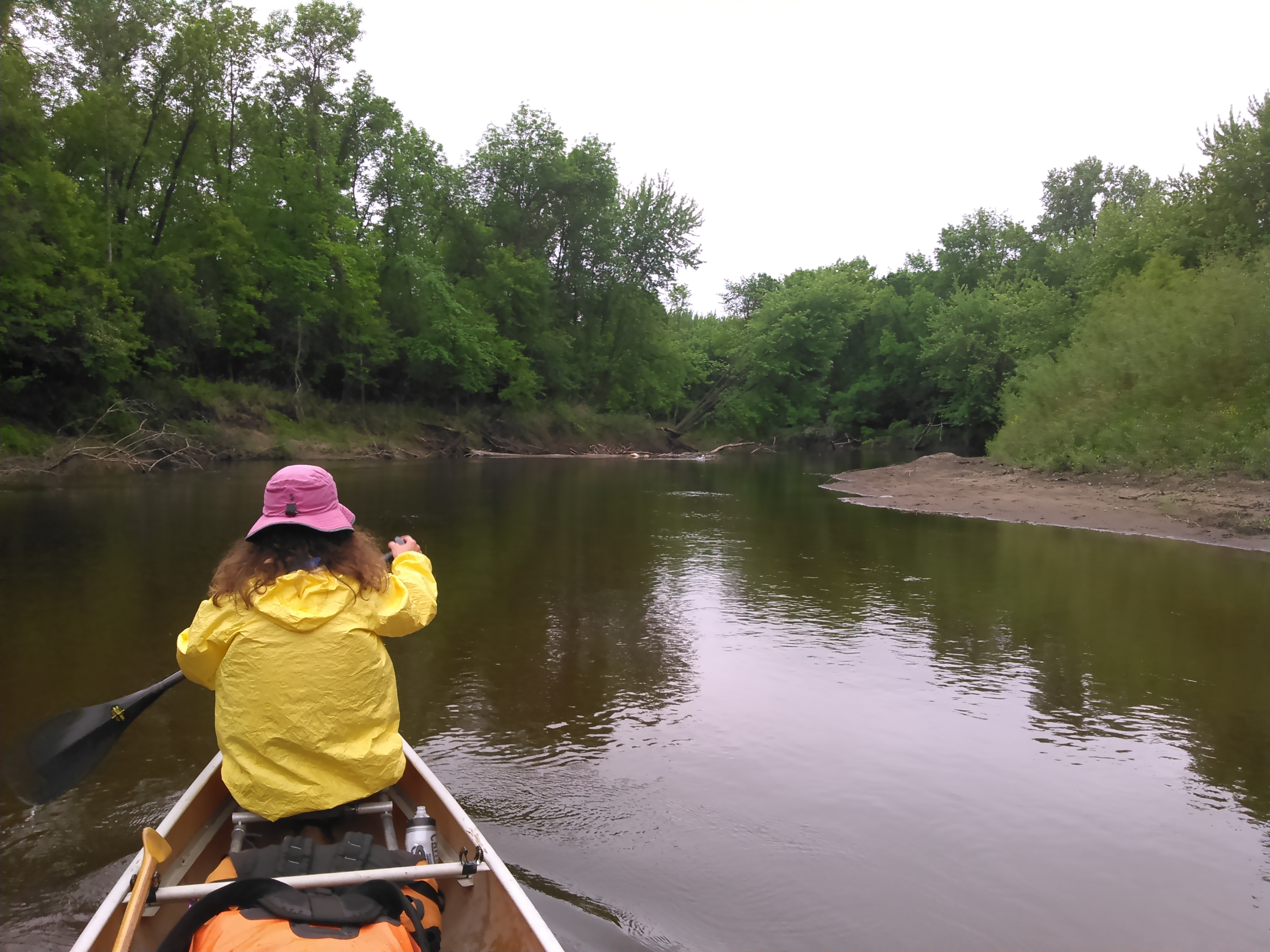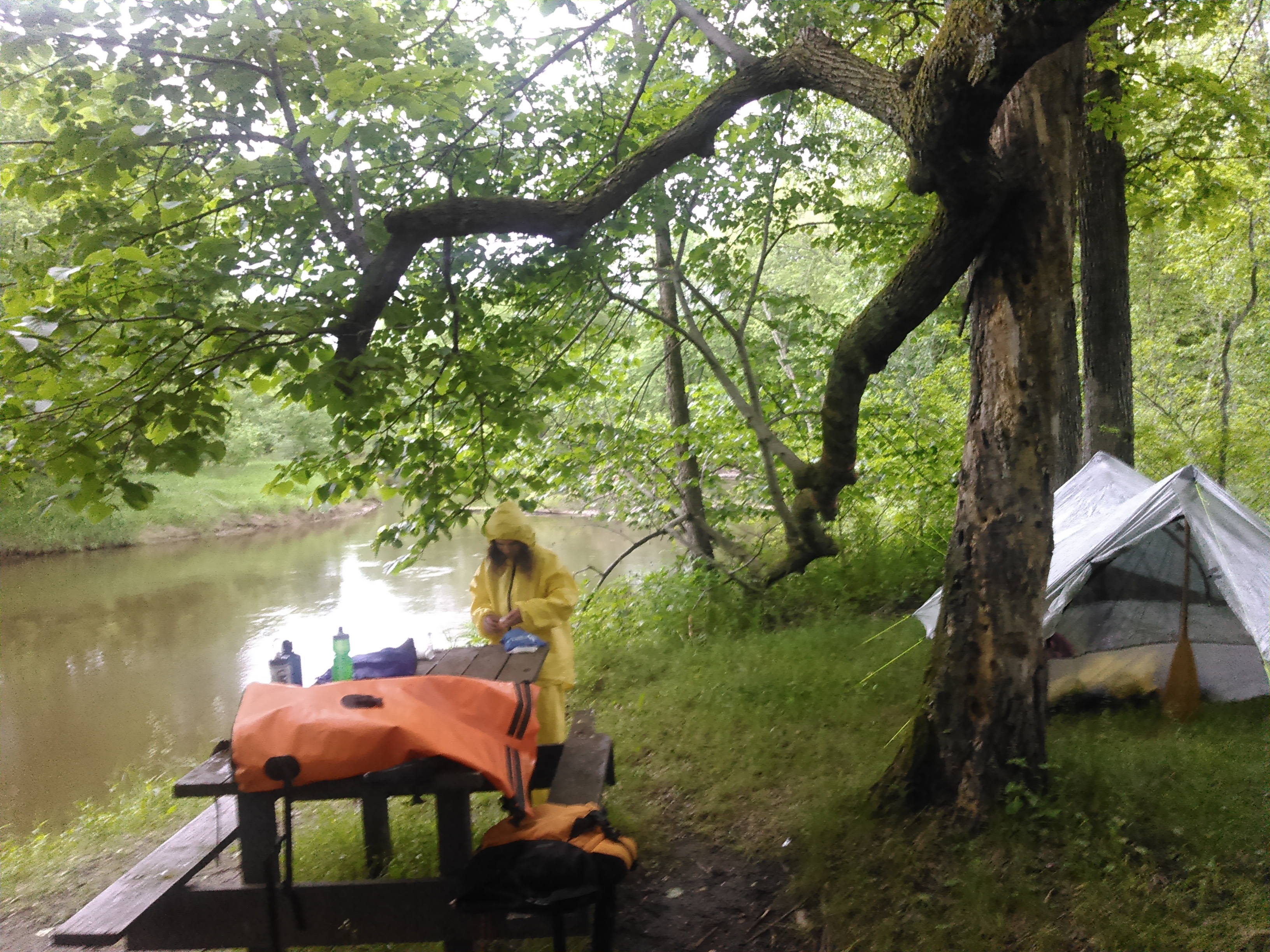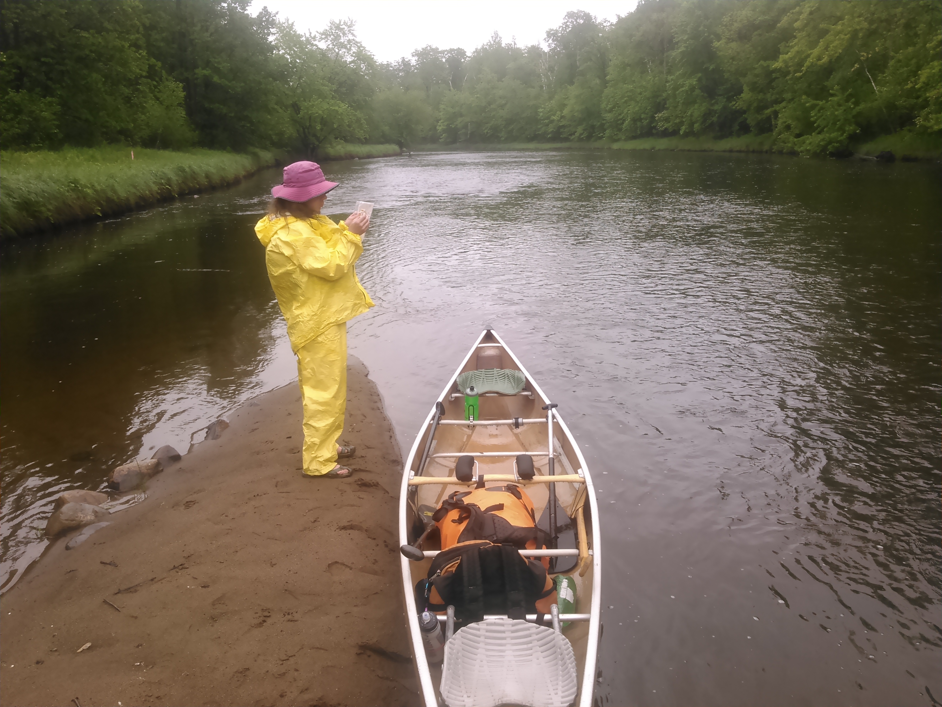 It always seems like no matter what rain gear I wear, my clothes underneath still get wet- either from rain soaking through or from sweat. As such, sometimes I try to take off my clothes and just wear rain gear but when it first started to rain I didn’t have time or the ability to do this in the canoe so I just put my rain gear on over my clothes and hence my clothes got wet.