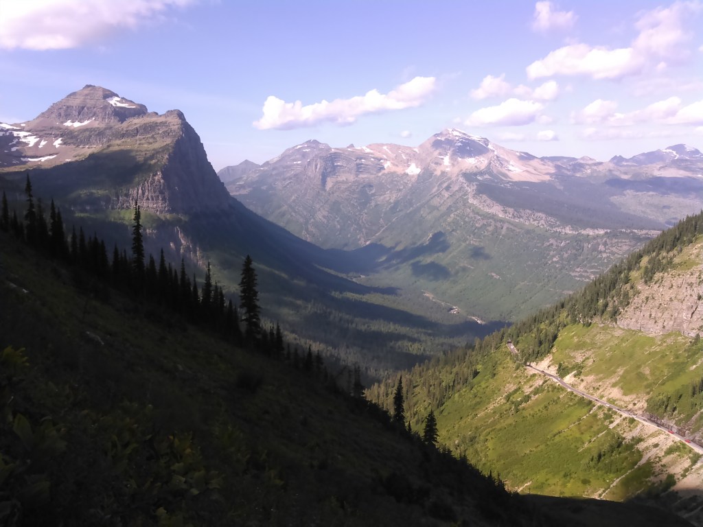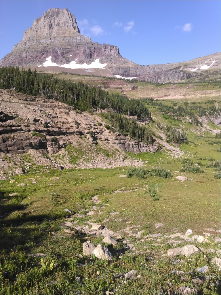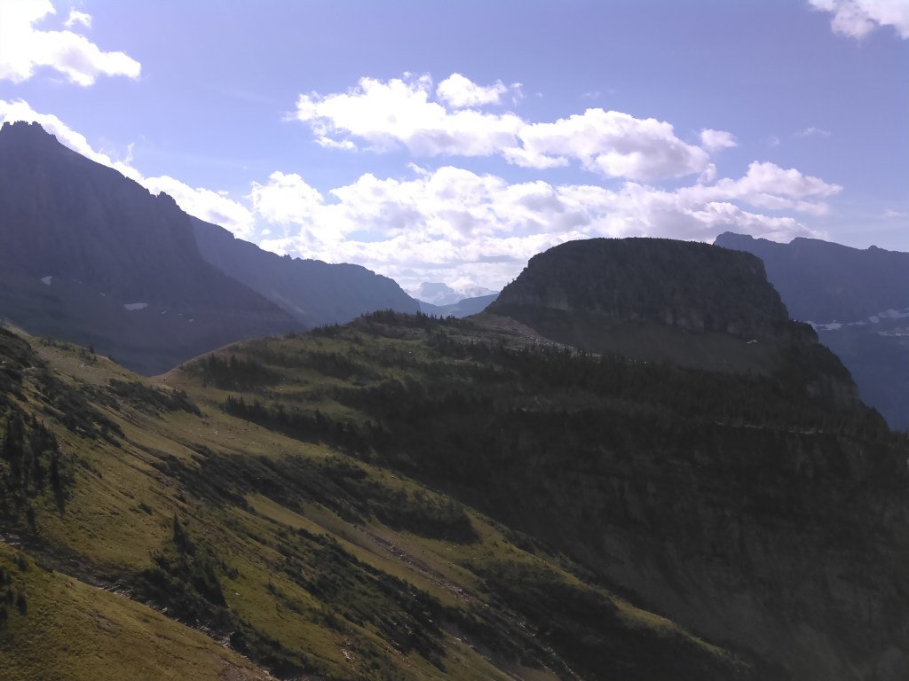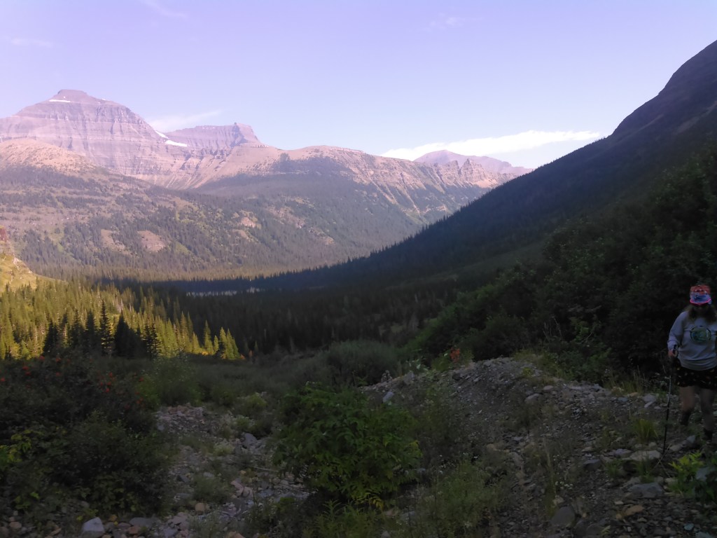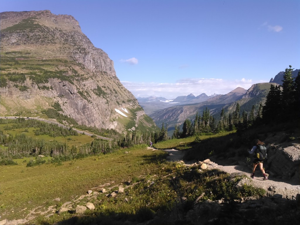 Coming down from the pass and hiking to the Going to the Sun Road was easy with good views for a long time before we got in the trees again.