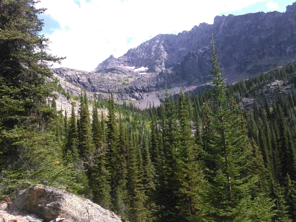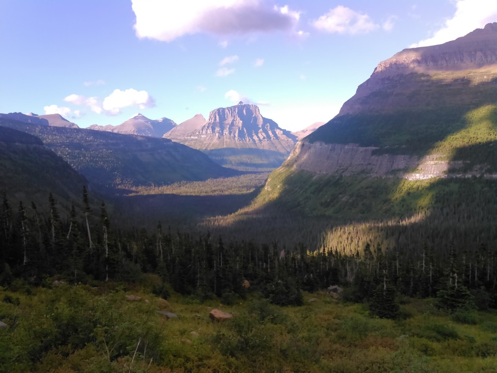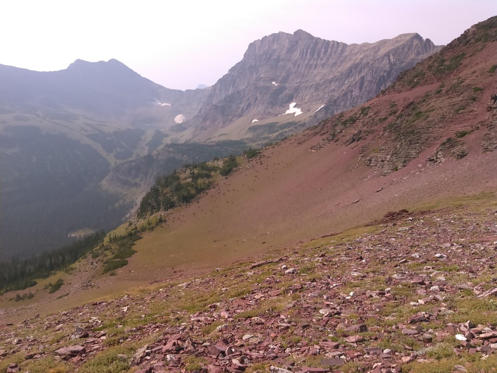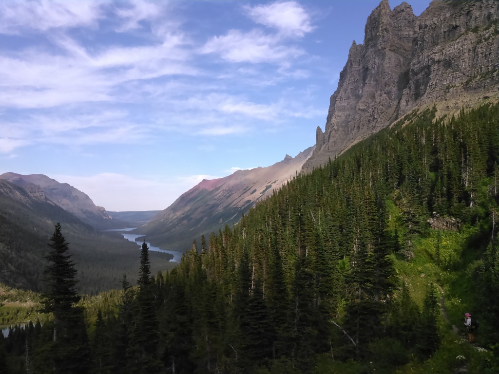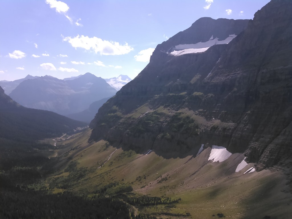 Coming down from the pass and hiking to the Going to the Sun Road was easy with good views for a long time before we got in the trees again.