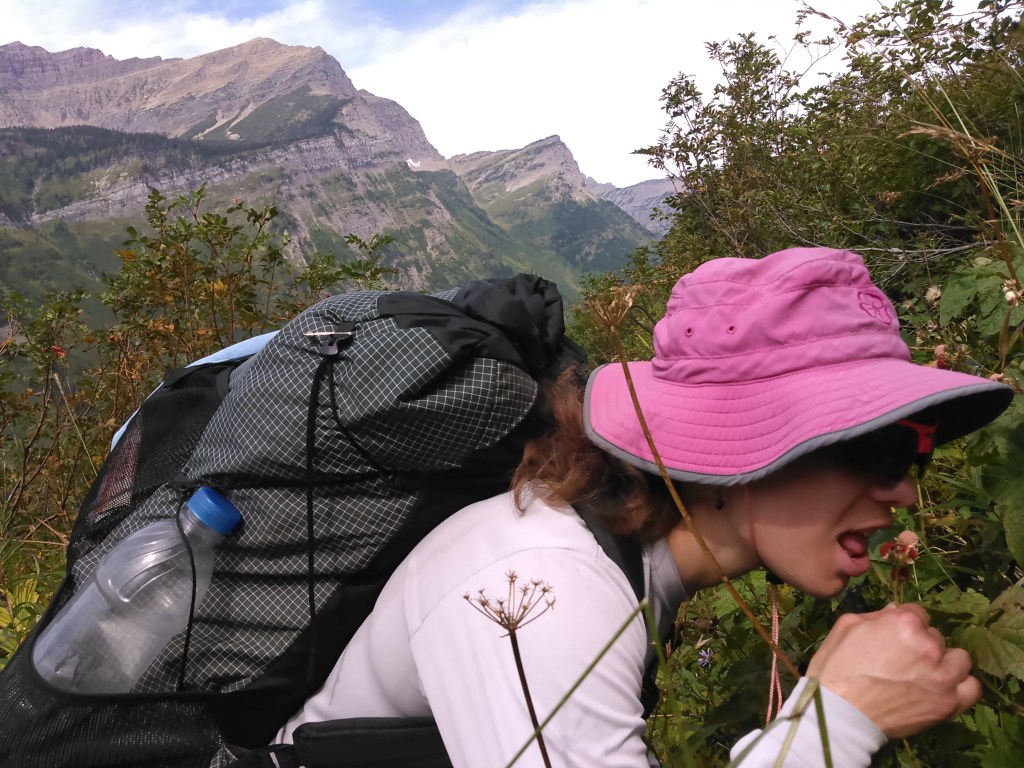 The hiking was again easy and we made good time to the Foot Lake Elizabeth backcountry campground. We weren’t even the last ones in camp! Over dinner we chatted with a couple from Juneau, Alaska, who had flown into Seattle and then taken the train to Glacier. There was also a guy with a revolver (can’t say I’m used to open carry), a party who was super impressed with their effort on Red Gap Pass (lame), and what seemed like more cans of bear spray than people!