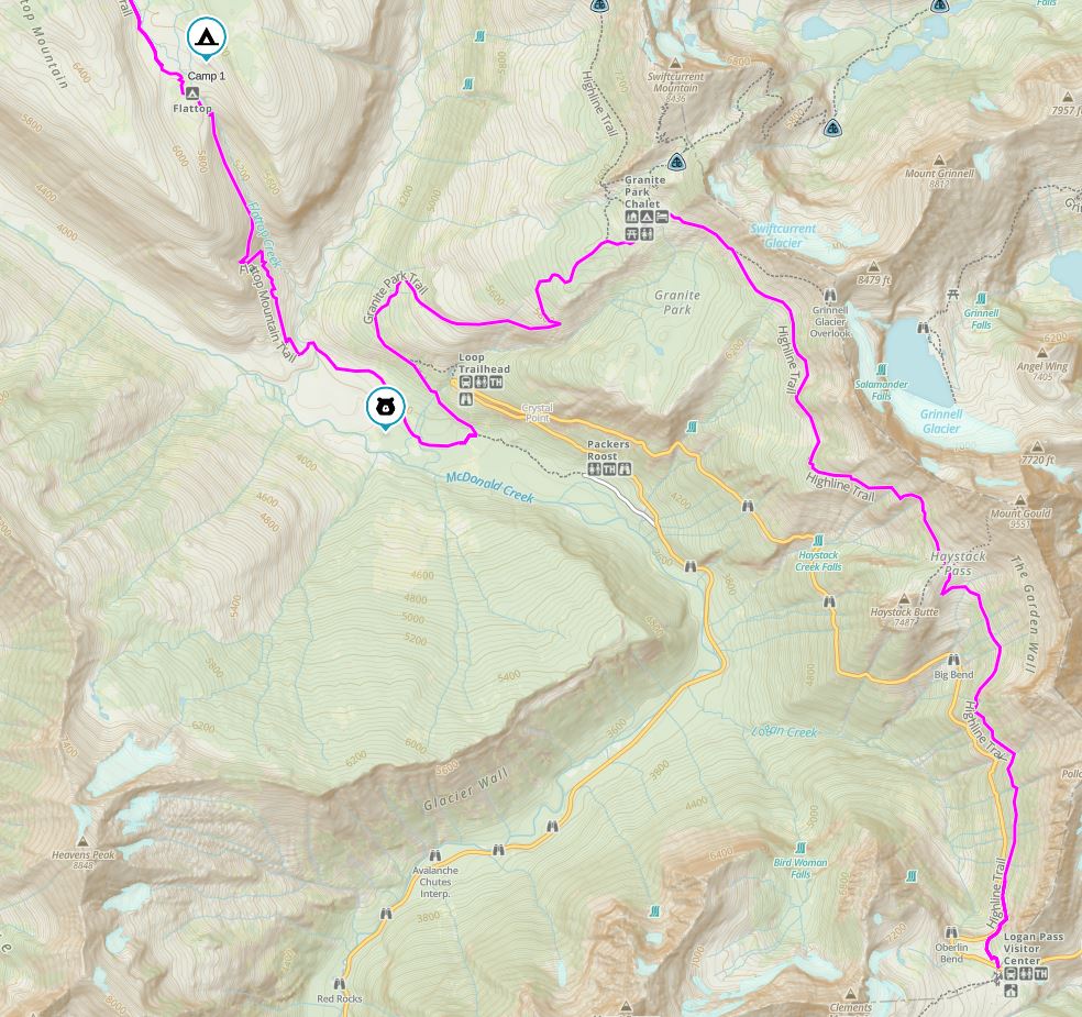 Day 1 (8/28/2016): Logan Pass to Flattop Backcountry Campground