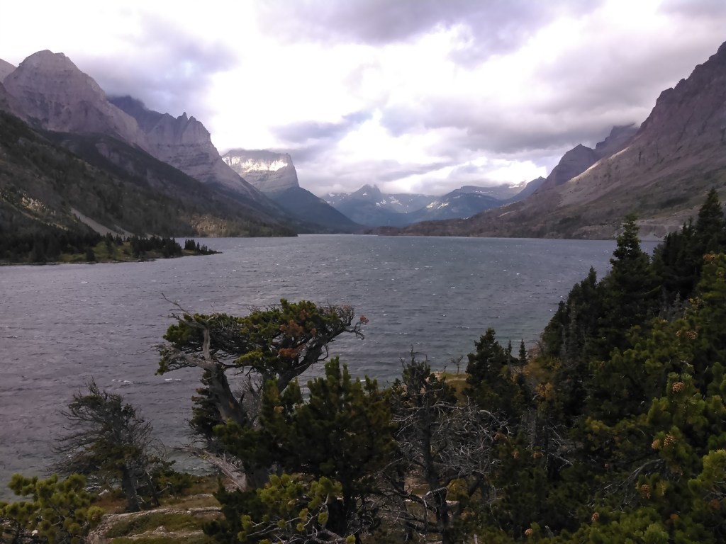 Day 6 dawned gray and windy! Since we only had 5.4 miles to hike to Otokomi Lake (not in the original plans- but the new plan cause of the griz at Lake Ellen Wilson) passed the time down by Saint Mary Lake. At first we had fun in the crazy wind, but by the time we returned to our camp, we were frozen. And then it started to rain.