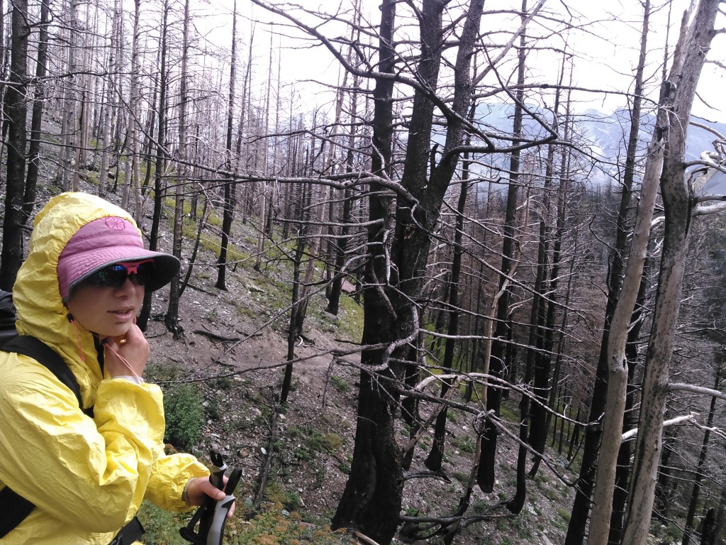 After that, for awhile at least, we tried to talk louder. As we began our ascent we entered into burned forest and crossed a swinging bridge.