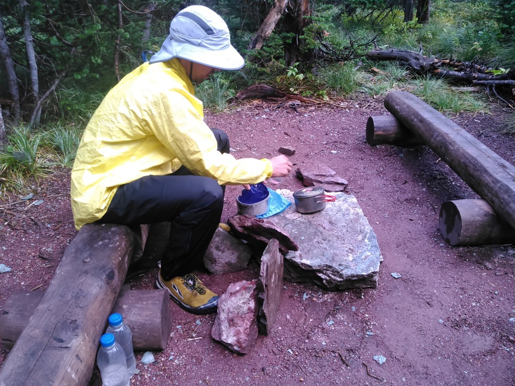 We also found an original MSR PackTowl (size medium) made from microfiber at this camp that had been left by a previous owner. Erik suggested I make it my pee rag. I had been debating jumping on the pee rag bandwagon and with Erik’s nudging decided to give it a try. It took a bit of getting used to, but soon I couldn’t backpack without it. There was only one other camper in the campground that night and he arrived after we’d already finished our dinner.