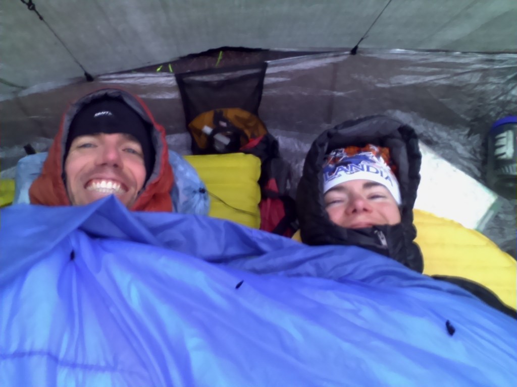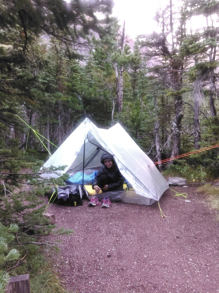 Eventually we gave up getting to the glaciers and turned around and headed back to our lively backcountry campground where we exchanged some commonalities with a few folks and then brushed our teeth and headed to bed. We were glad the sun had come out and the wind had chilled out and wondered if we’d awake to snow.