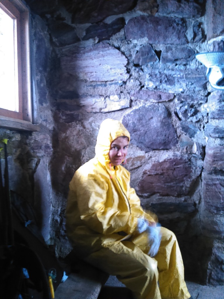 As we got near the pass, we were completely in the clouds but there was no snow. It was cold and windy. There’s a hut at Gunsight Pass and Erik said we should duck in there.