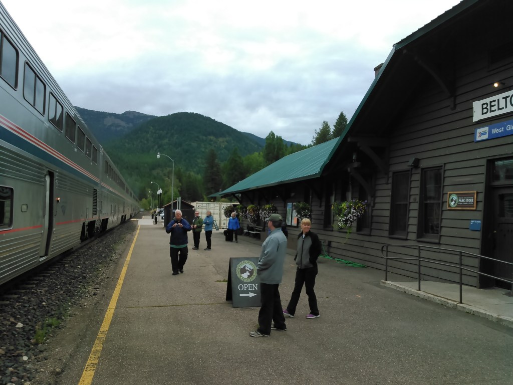We had to set our alarm for an early morning 3 mile walk from the campground to the train station at West Glacier. It was good to at least stretch the legs before getting on the train. Once on the train, we took showers! Kinda crazy to be in a slippery shower while the train was moving.