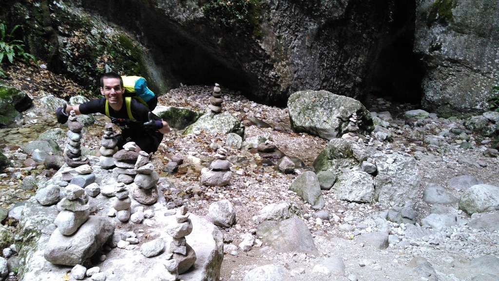 I guess you could say the Rio Sallagoni (use this website for more details for this and the other ferratas) was up a slot canyon. This was my first ever ferrata and it took me a bit by surprise. It was just like “here we go.” The first part of the ferrata was quite short and then we came to a small cairn field. From here the ferrata was more scattered. There were a couple swinging bridges and some narrow places. Once we got out of the canyon, we hiked up the hill to the Drena Castle.