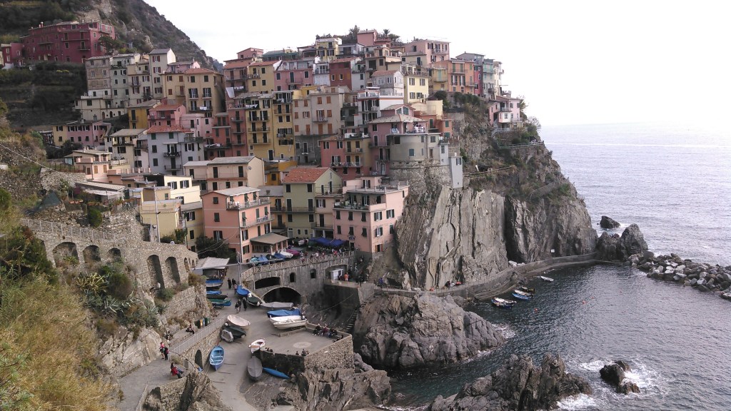 Cinque Terre is Italian for “5 villages.” From north to south, these villages are Monterosso, Vernazza, Corniglia, Manarola, and Riomaggiore. These villages are located on the Ligurian sea on the northwest coast of Italy. While there are roads to each of these towns, driving in the actual towns is only allowed for delivery trucks. There are many trails that connect these towns on both high and low routes as well as a train and a seasonal ferry.