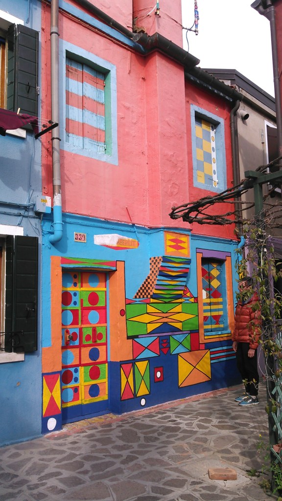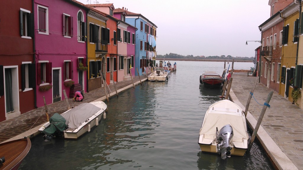After breakfast, we boarded the water bus, also called the vaporetto, (note, because people get around via water the “buses” in Venice are really boats) to the colorful island of Burano. Click here for a vaporetto map.