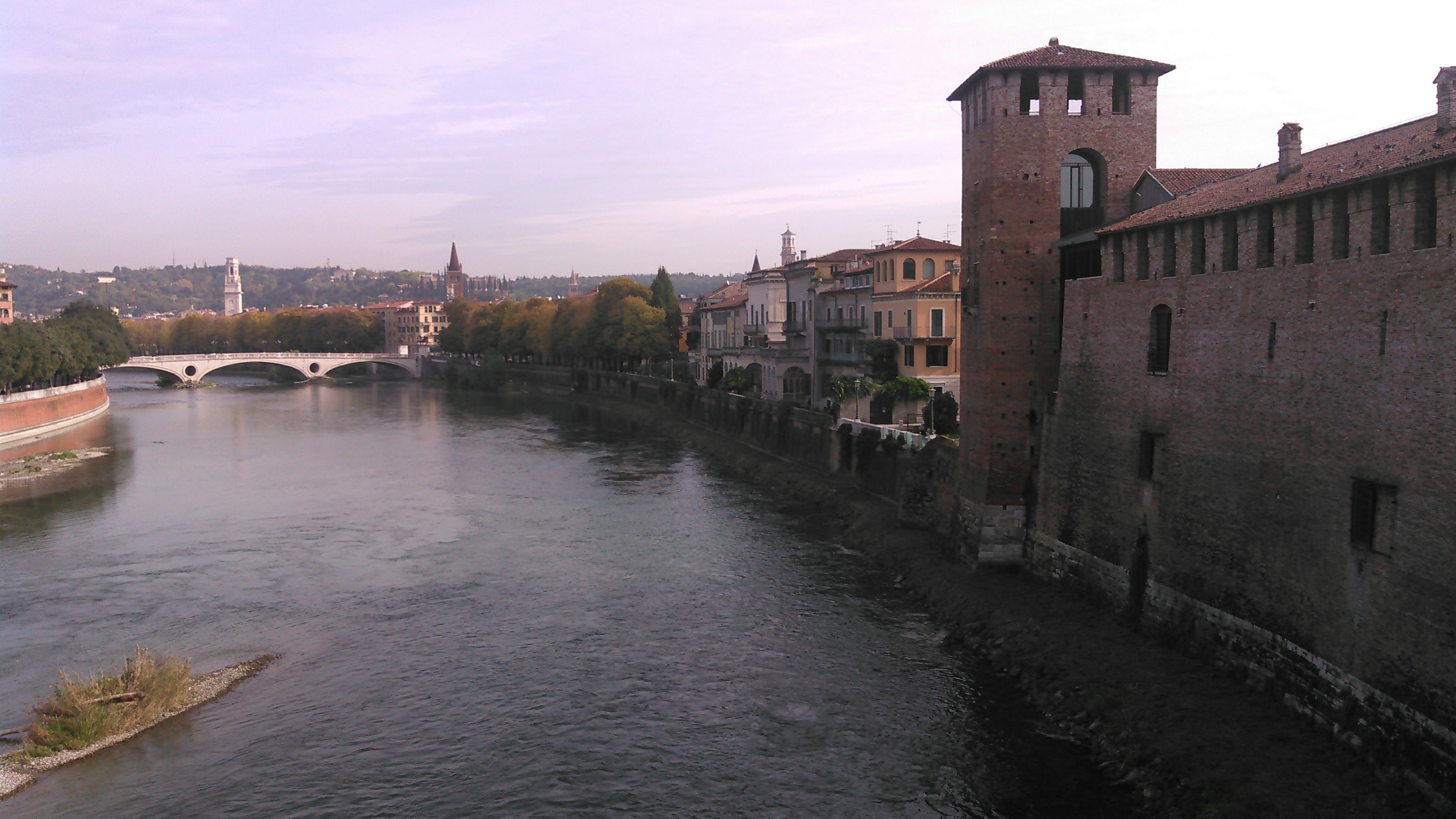 To get from Riva del Garda to Cinque Terre, we first took a bus to Rovereto where we hopped on the train. Again we had a layover in Verona, but this time we were ready and made it to the old city and a bridge across the Adige River.
