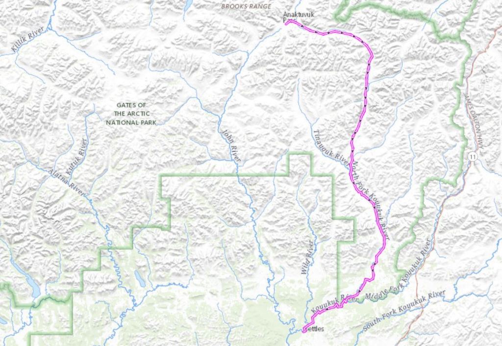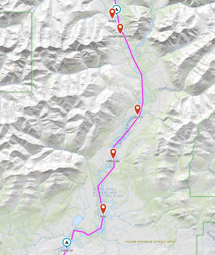Next time: We’d like to go from Anaktuvuk Pass to Bettles again but on a different route. We like going between these villages simply because it’s easy to fly in and out of them. Our route would take us mostly south of Anaktuvuk Pass, heading towards the Tinayguk River which we would catch at it’s 90 degree bend where it changes directions from flowing west to south. We’d packraft the Tinayguk to near it’s confluence with the North Fork of the Koyukuk, but then portage into Wild Lake and paddle the Wild River back to just above Bettles where it joins the Koyukuk. We would travel lighter and think about ridge walking as opposed to valley walking.