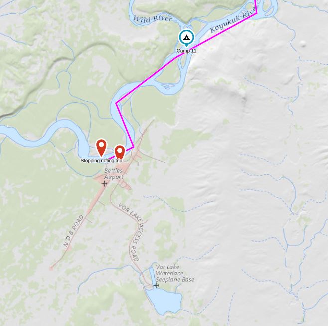 We had a short and very easy paddle/float to Bettles. If you do this trip, note that it isn’t super obvious where to take out in Bettles. Remember that Bettles is not a metropolis- there are no skyscrapers dominating the skyline, or even airport tower. There are a few scattered small houses along the east bank, the river turns west and on the south side of the river there is a gravel bar with an unobtrusive motor boat ramp.