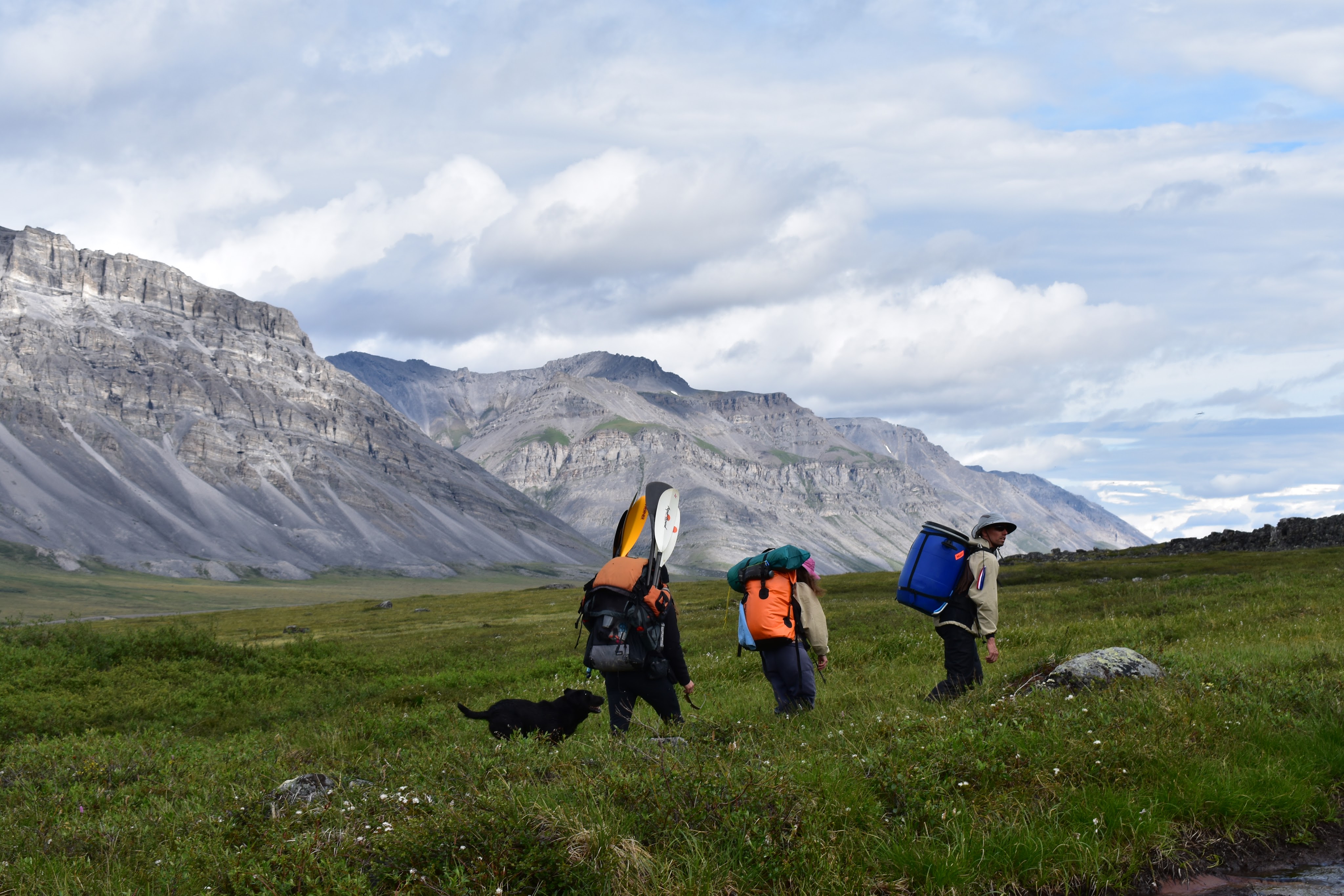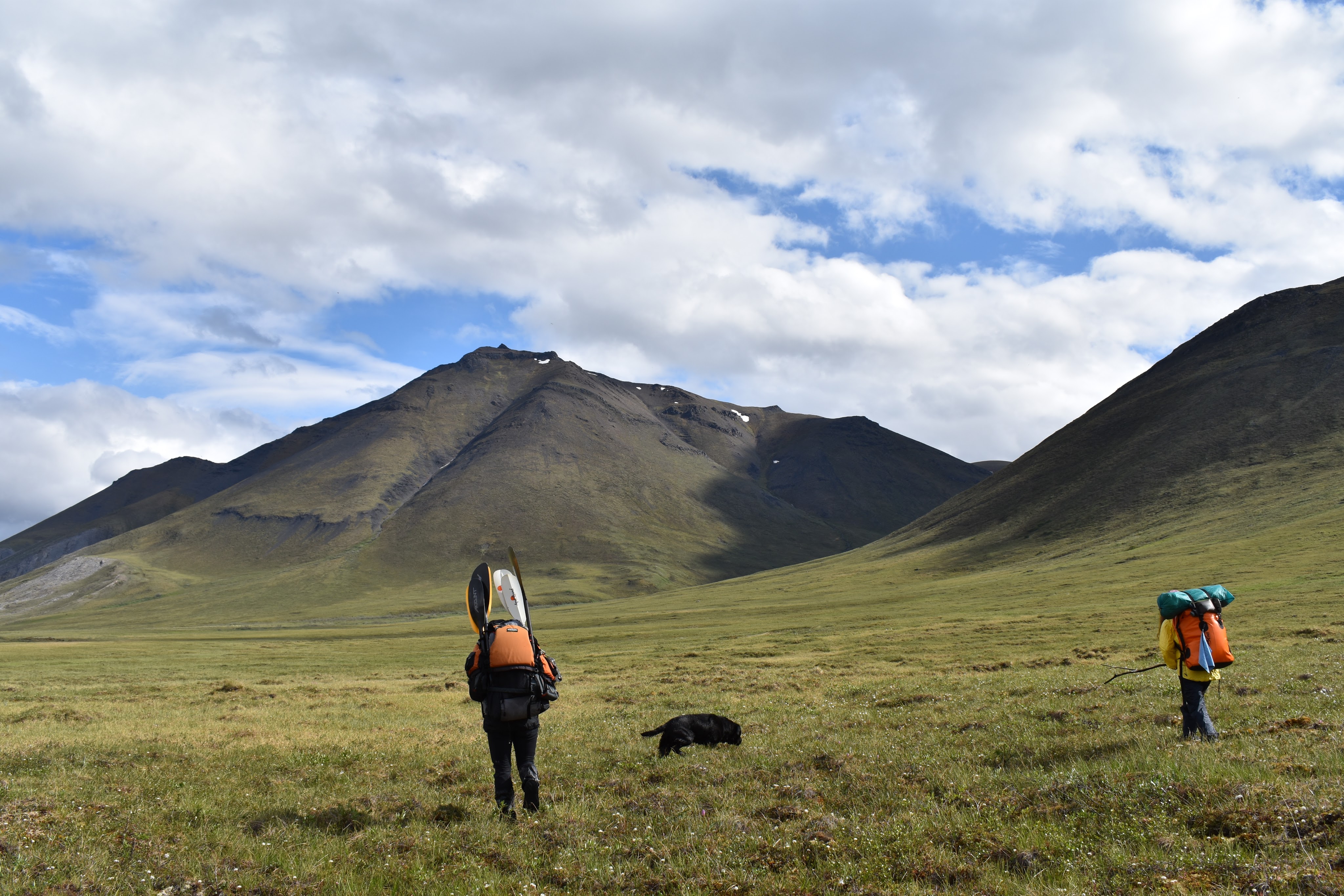We started yelling at the dog to go back home. He didn’t listen and kept following us. Finally, Tiffany, who is usually quite sweet, found a stick and started beating Argo. After this we all had to keep a united front that he needed to go back home. We spent the better part of an hour yelling at Argo and threatening him with any sticks we could find (these were hard to find on the treeless tundra but there were a few scrub trees around near streams). We even debated using our bear spray.