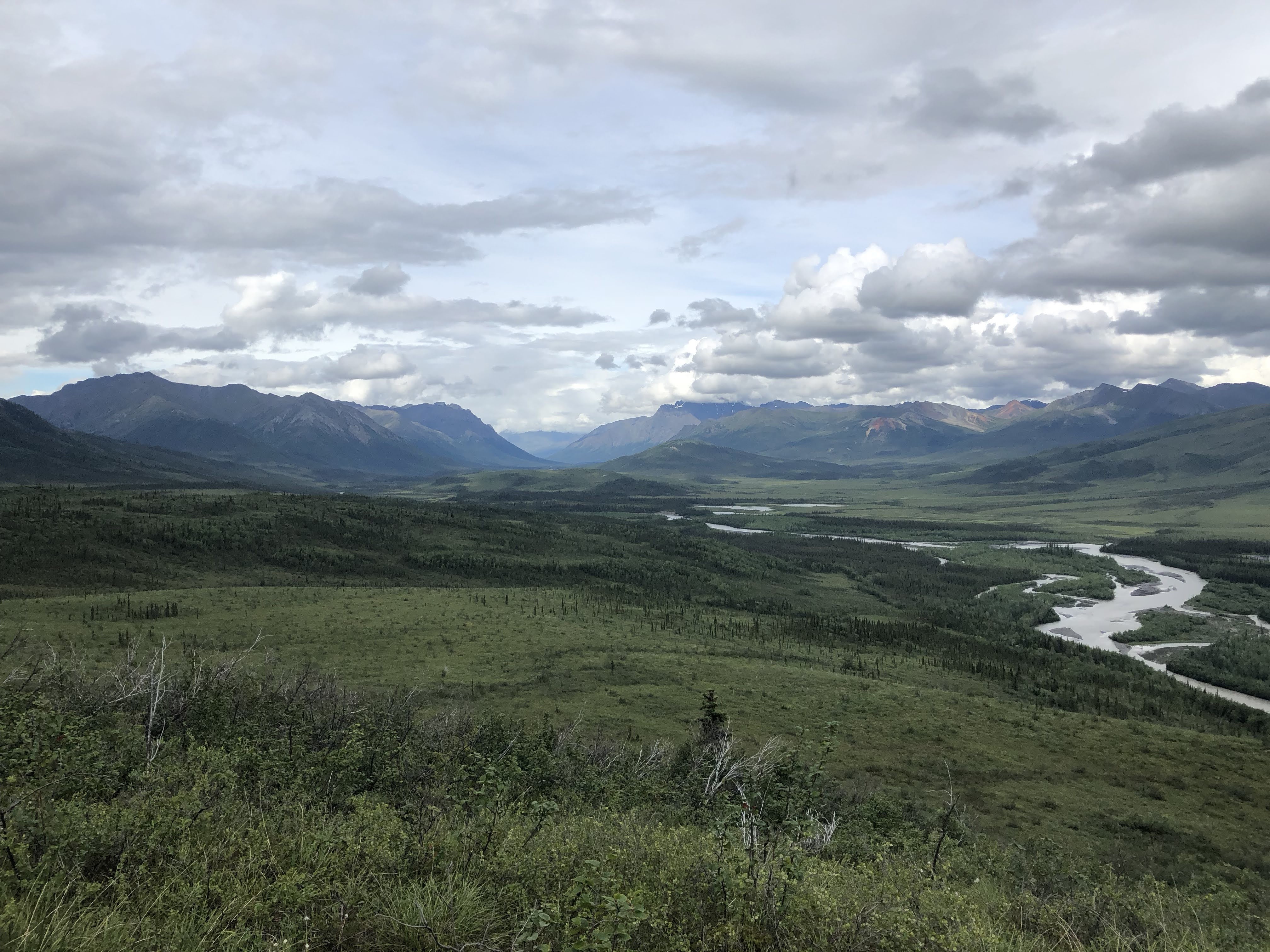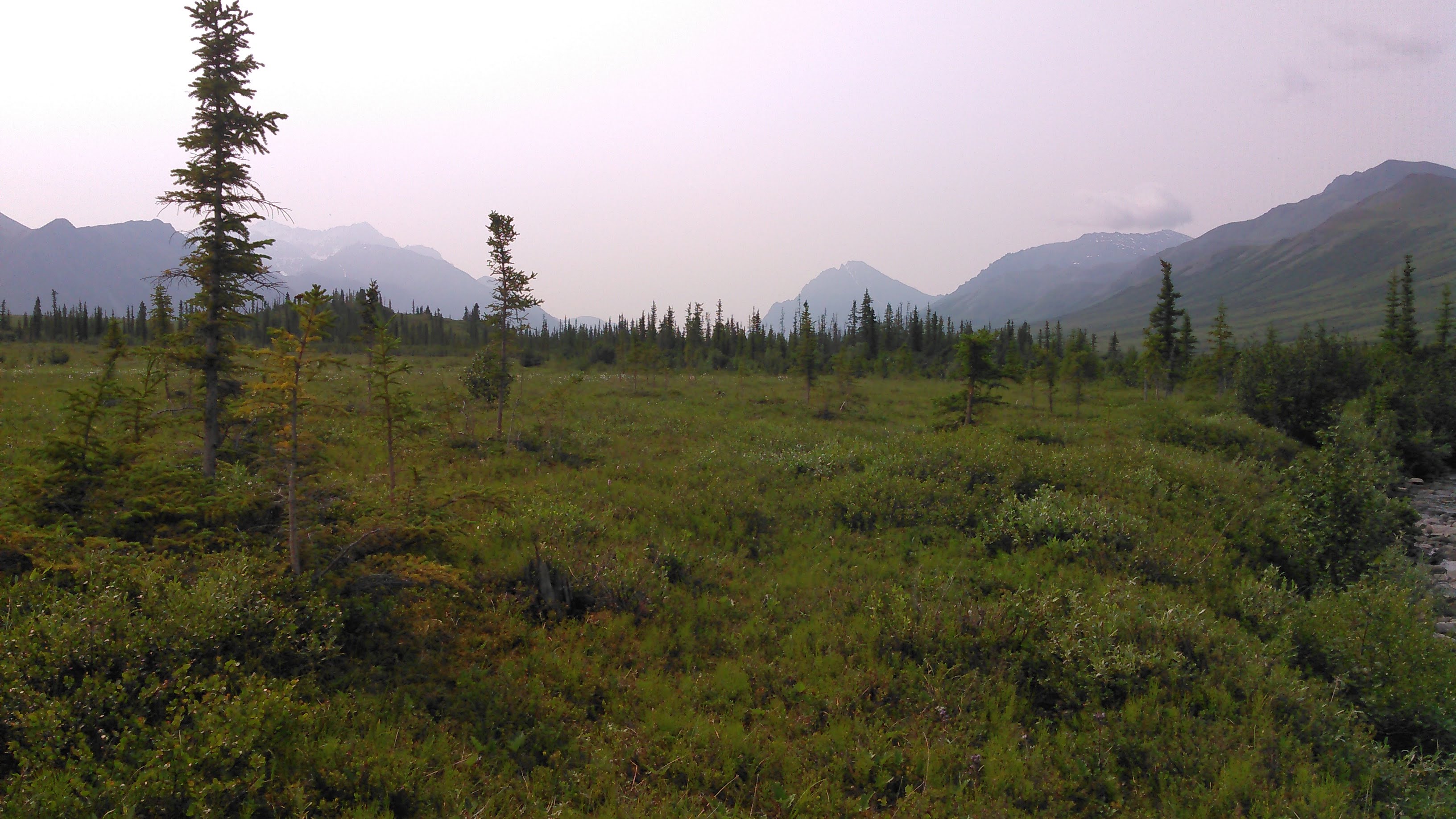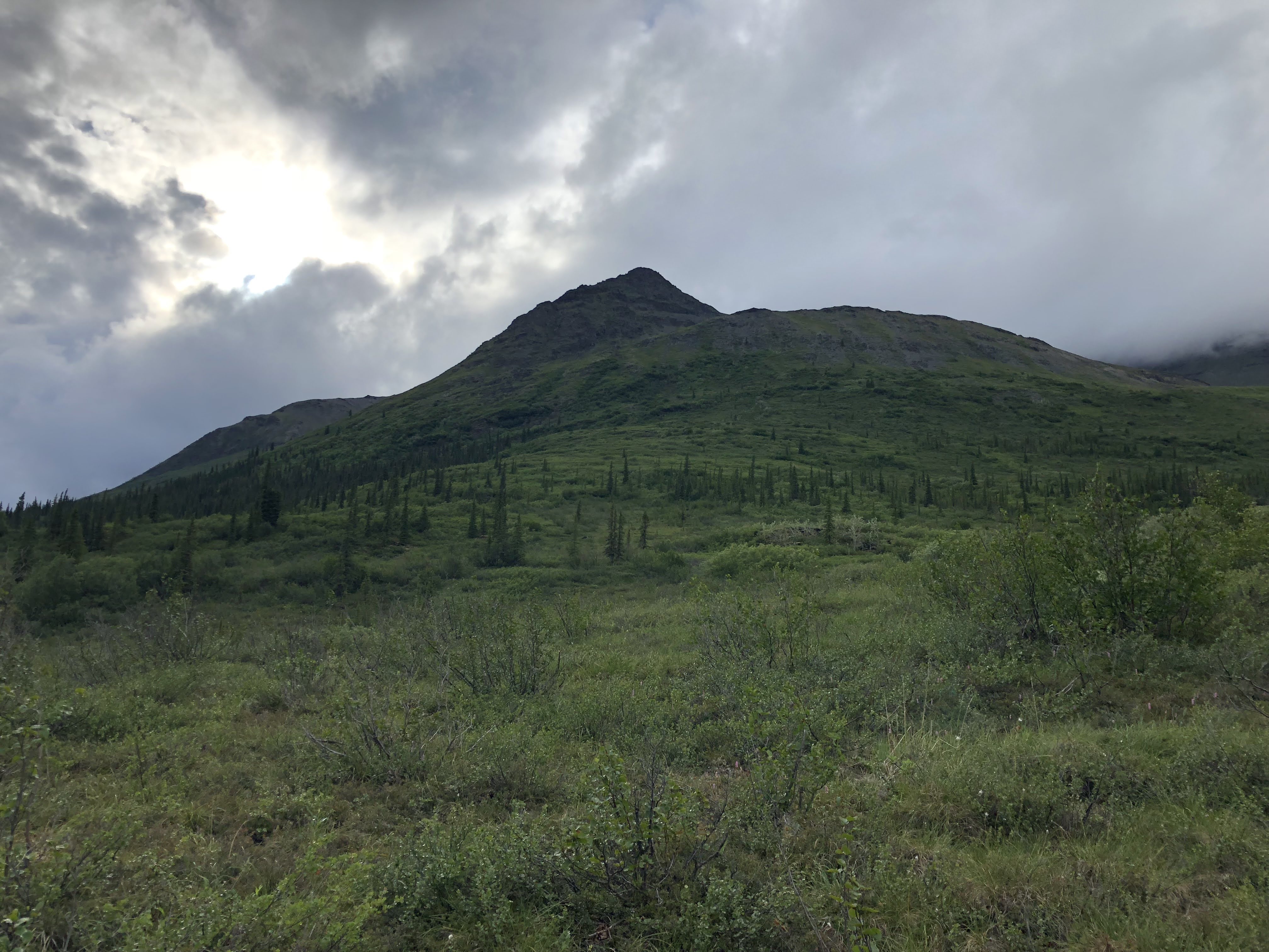 This was likely a good idea as soon thereafter Ernie Creek ran into its last gorge and that looked way too thrilling. Up above the gorge, we had great views of the Gates before we headed into the forest, down to the North Fork of the Koyukuk River. It was weird being in the trees again. The forest wasn’t too thick and it was easy hiking.