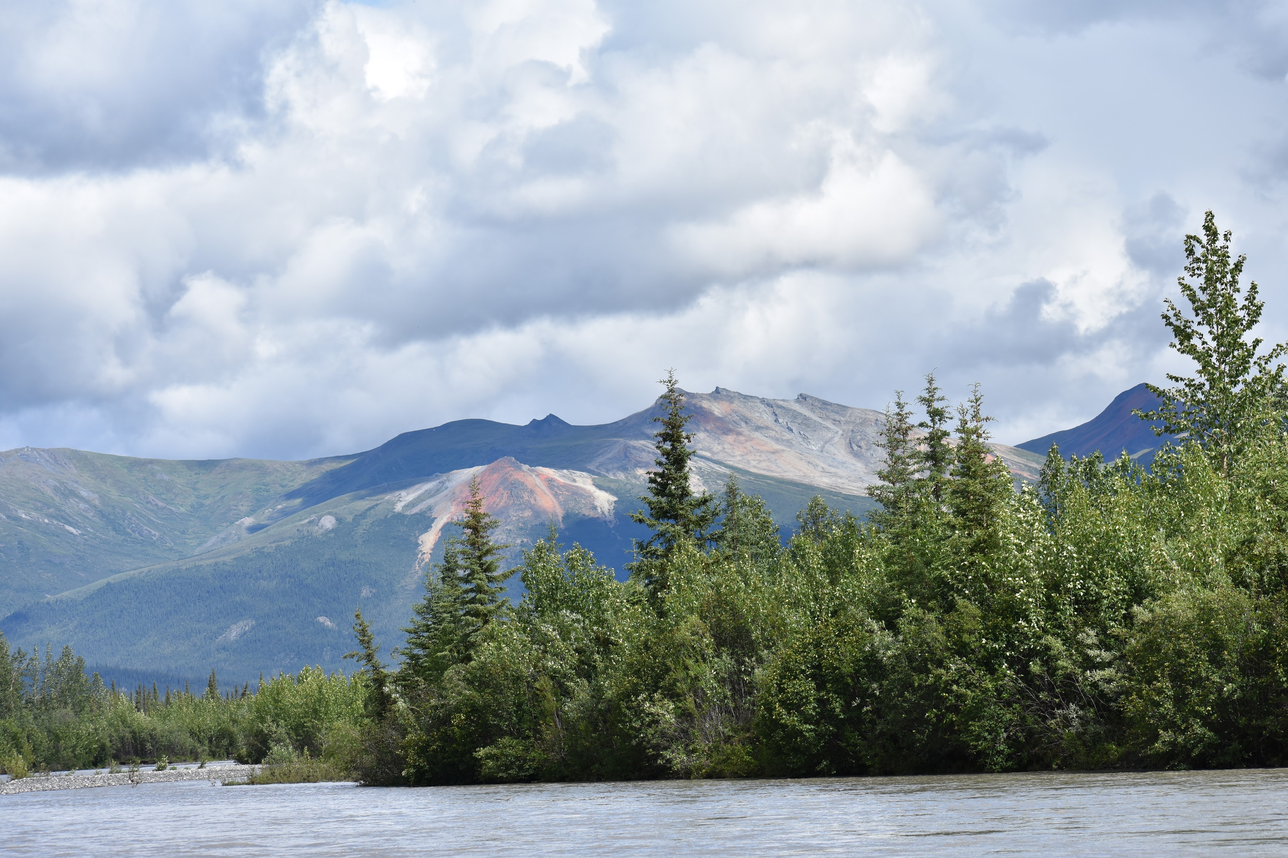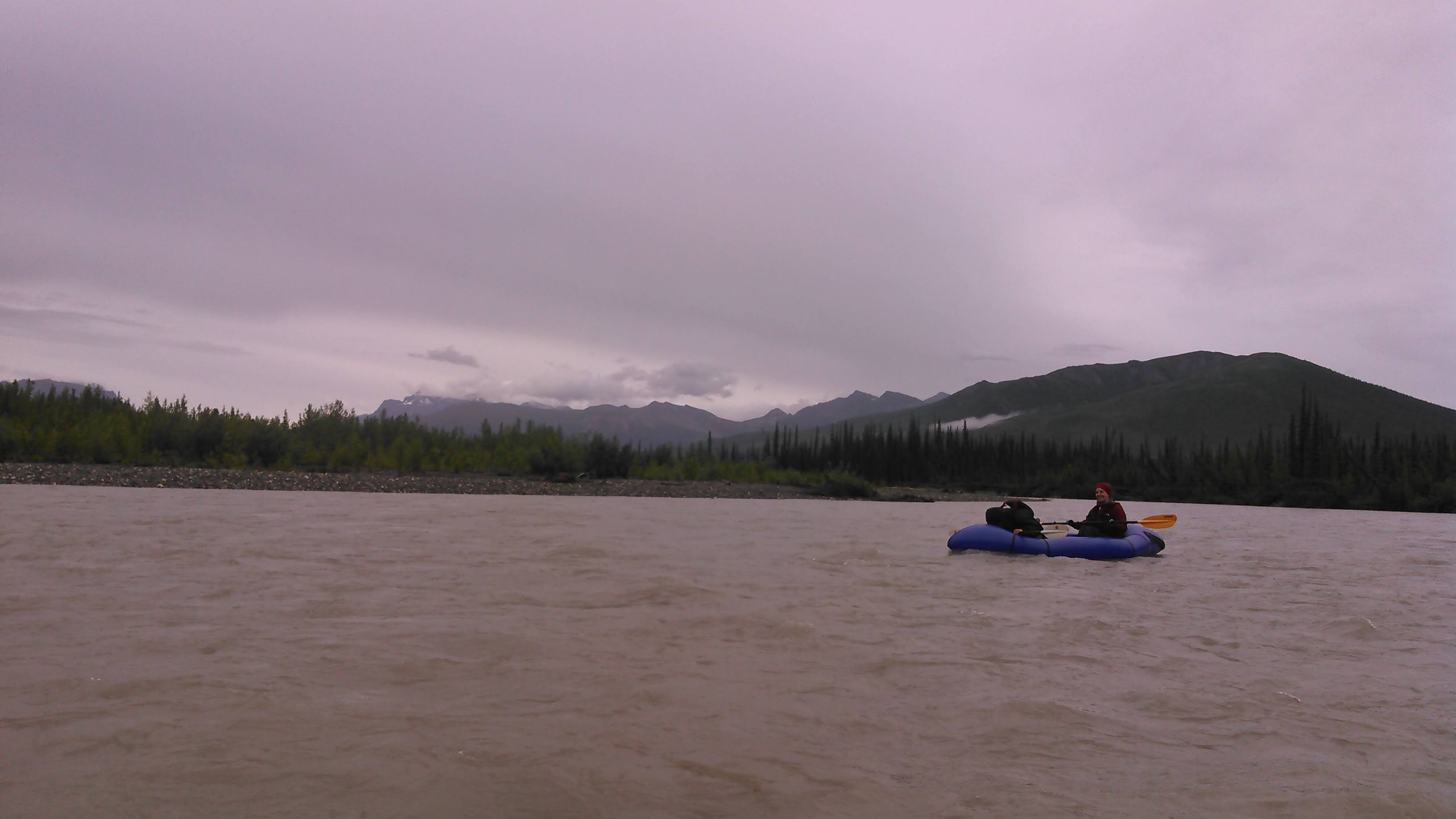 We only knew of one significant rapids on the Koyukuk (Squaw Rapids that we wouldn’t come to for a couple more days) but as we paddled near Redstar Mountain, we went around a big bend in the river and were suddenly in a Class II rapid. Despite this, the packraft handled marvelously, bouncing out of small holes and handling big waves without much excitement.