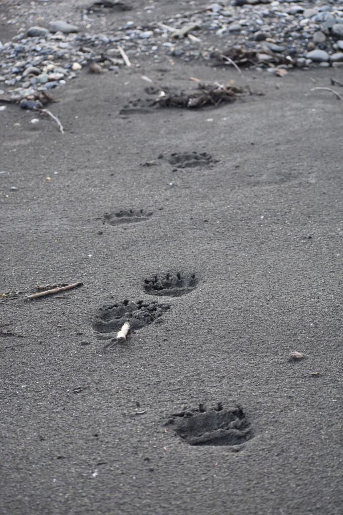 Tiffany and Sarah waited for us on another gravel bar- this one with grizzly tracks.