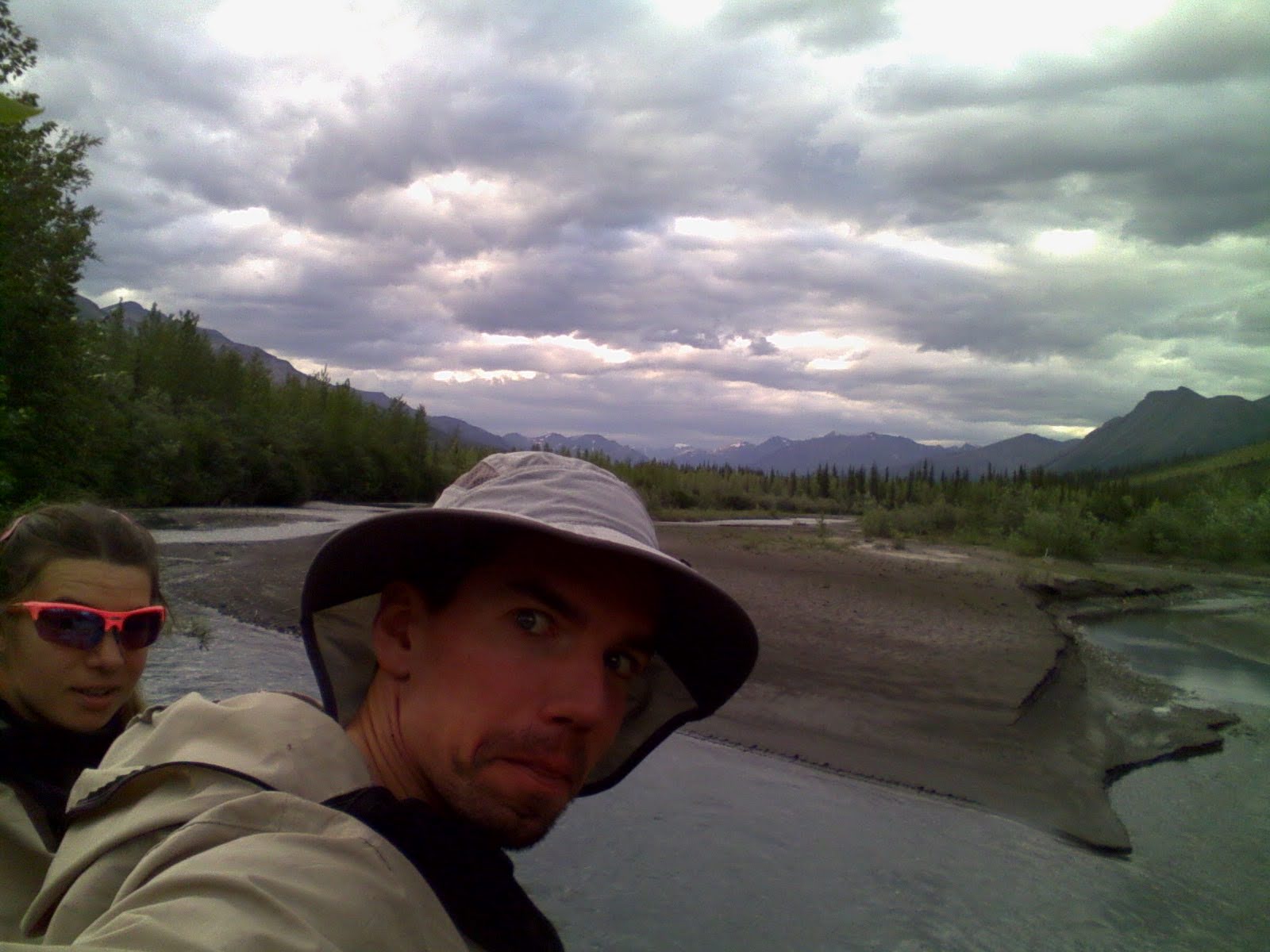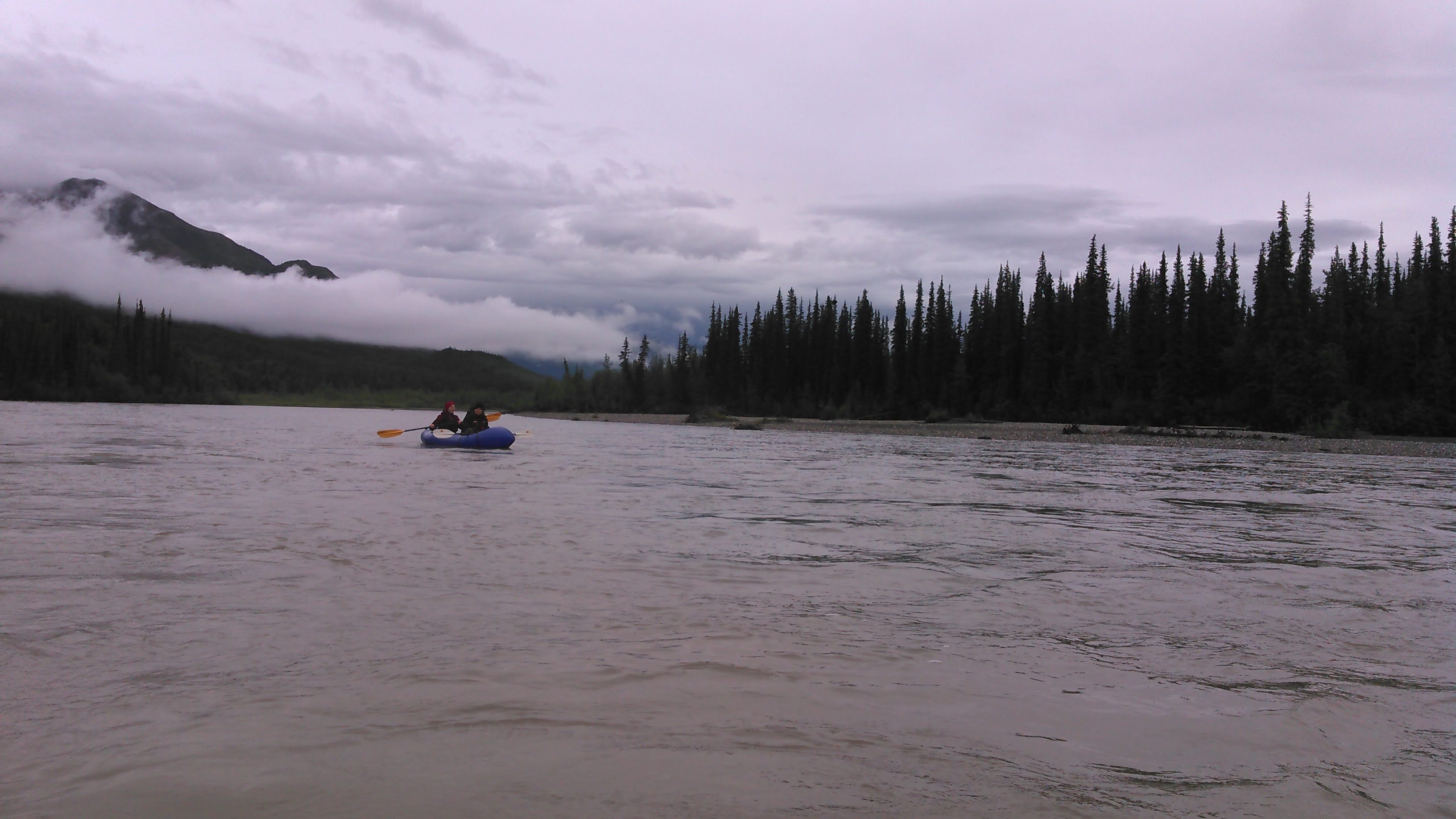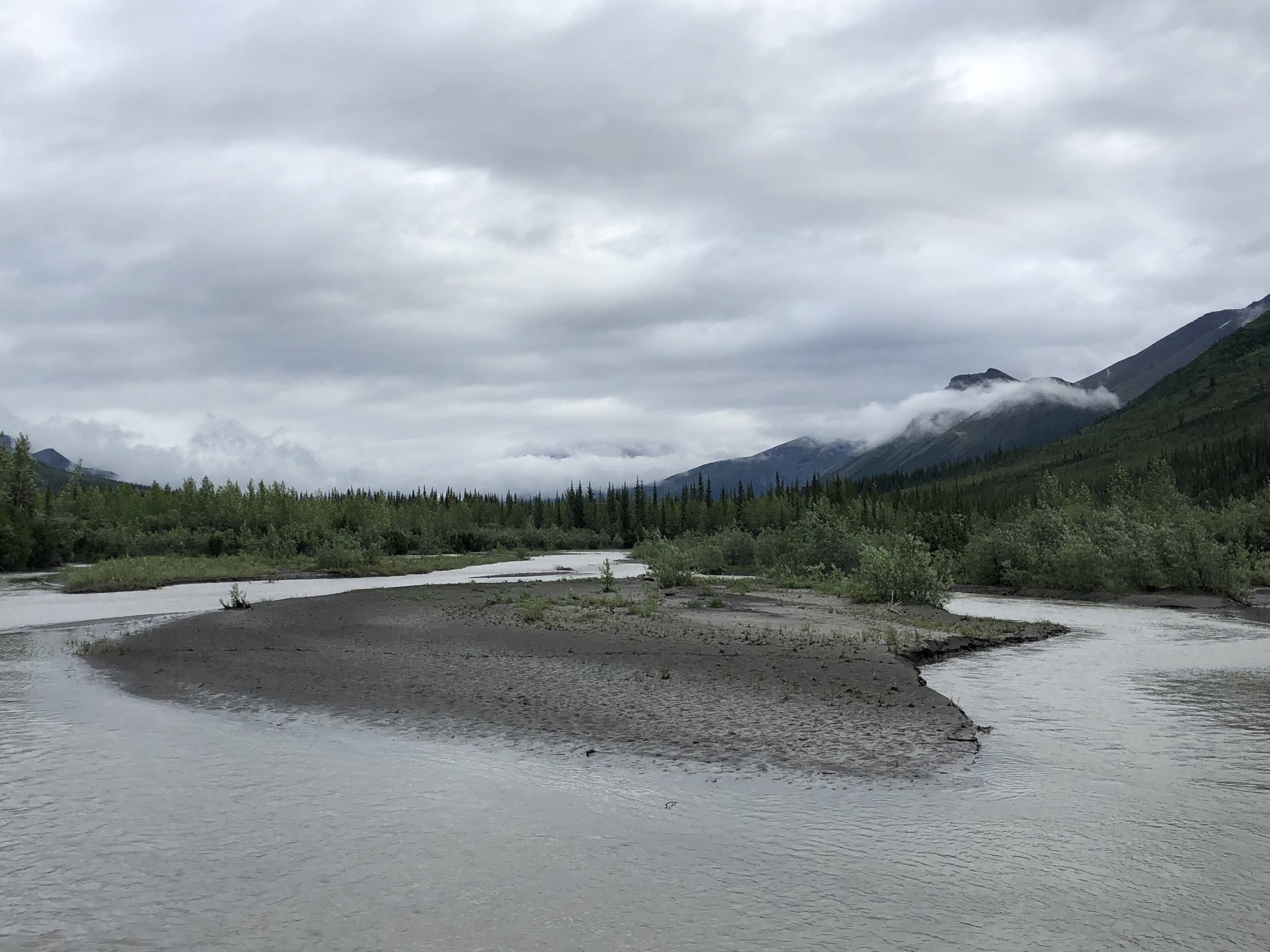We camped on an island at the confluence of the Wild River. When we first got to the Koyukuk, the water was blue but after all that rain, the water turned brown. The water in the Wild River was nice and clear. We paddled over to the Wild to fill up our dinner pot and our water bottles.