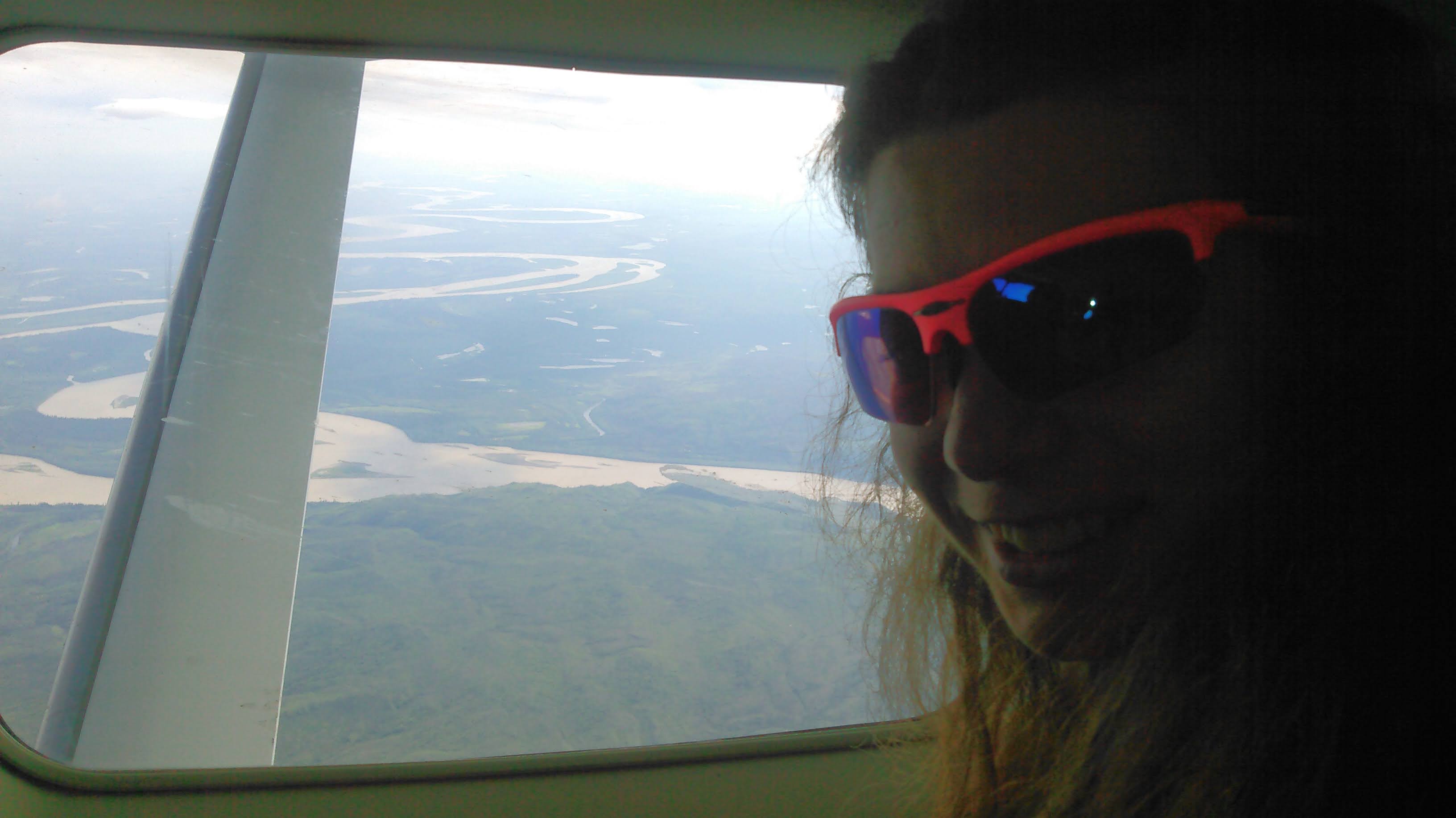 This was my first time in a small plane. There was a single pilot and 10 passengers- our group of four, the two guys we had met at Sven’s, and four others. The flight was noisy (we wore ear plugs) but not unreasonably so. And it was the absolute most amazing flight I’ve ever been on as we flew over the Yukon River and close to the mountains.