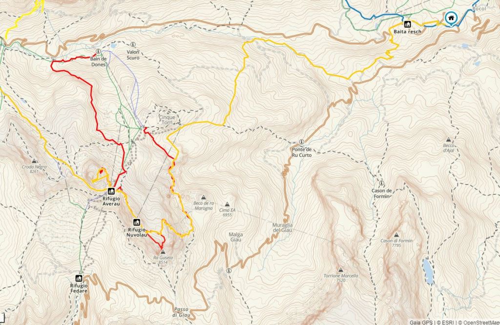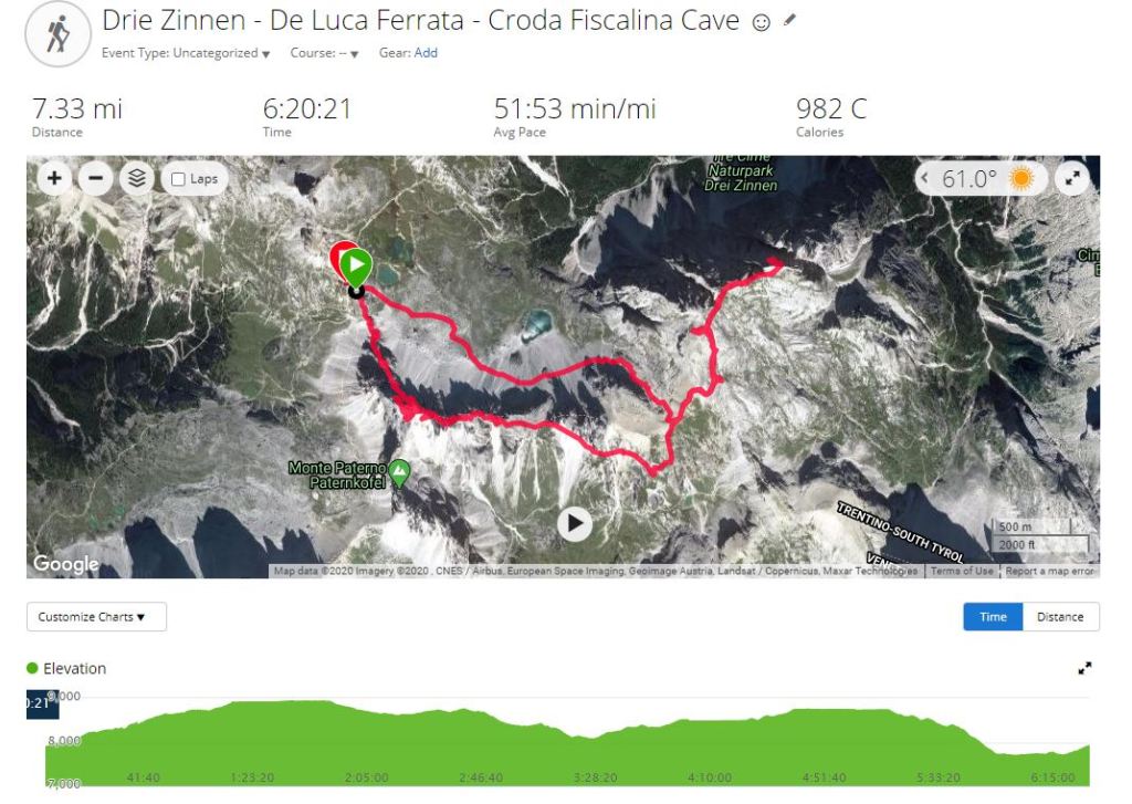 If anyone reading this is wondering if it’s a good idea to do difficult ferratas multiple days in a row, read my complimentary post where this day got quite the write-up. It turns out that several days in a row of difficult ferrata took their toll on me. I don’t think there is more to say so here’s the map which pretty much says it all- a short hike to the ferrata, a couple hours on the ferrata, a long descent to the valley that was a mix of easy and seemingly impossible, and then a big hike up to our rifugio.