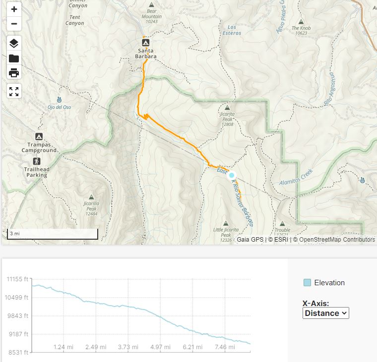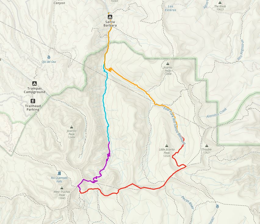 We planned our route- a high mileage 4 days of backpacking venture mostly on trails with a couple off trail sections in the Sangre de Cristo mountains of the Sante Fe National Forest. The Pecos Wilderness, where we would be hiking, is within part of the Sante Fe and Carson National Forests.