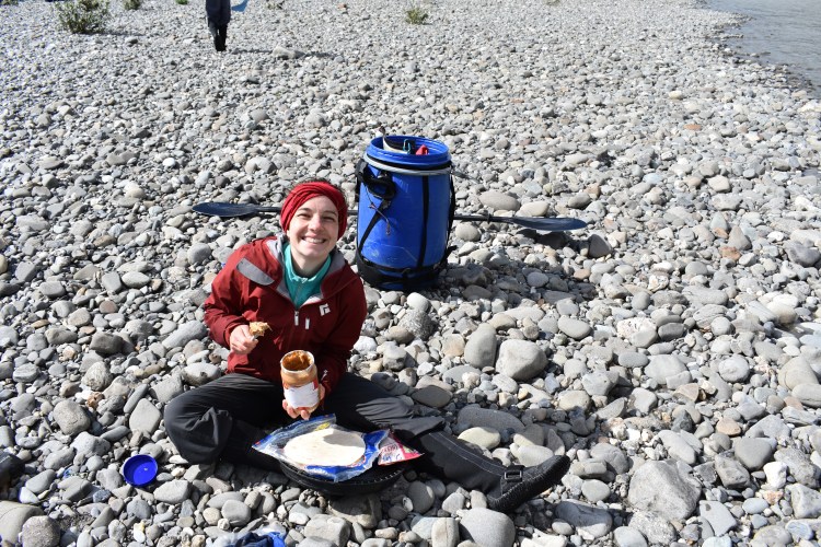 For lunch we each get two flour tortillas with peanut butter and dried fruit. Flour tortillas are the most durable and dense “sandwich bread” we’ve found. Bread, pitas, and whole wheat tortillas too often turn into crumbs. Although once we tried ciabatta rolls. These were durable but took up a boatload of space. Over the years we’ve learned that jelly/jam is simply too messy. Hence, we use dried fruit, usually bringing a few different kinds for variety throughout the week. On some trips, especially long trips, we might substitute Nutella for peanut butter, but this has much less protein than peanut butter. We have also used Yumbutter from time to time, available in squeeze packages which have their perks and drawbacks. These are expensive, sometimes hard to mix (so either won’t spread or initially comes out as a bunch of oil), and results in lots of packaging. Each tortilla gets one serving of peanut butter (2 Tbsp) and one serving of dried fruit (1/4 cup). We have used hummus instead of peanut butter in the remote past (if 2012 counts as remote past) but on those trips we mixed olive oil with hummus powder in an empty peanut butter jar, making a powdery explosion. Getting the right ratio of hummus powder, olive oil, and water was difficult so we gave up on hummus.