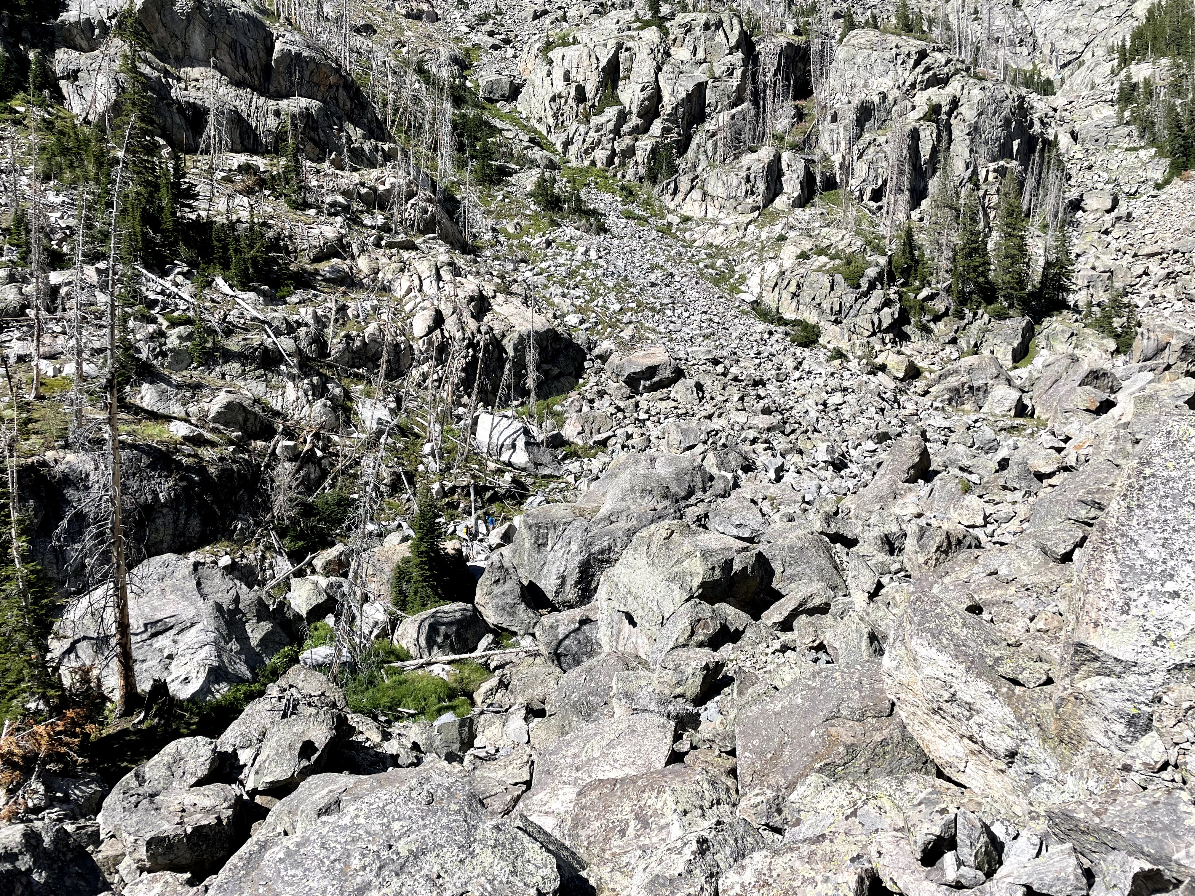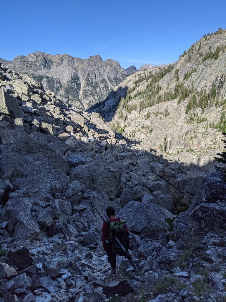 As I do more trekking off-trail, I’ve learned what I can handle and what is super hard for me. Loose rock and kitty litter paralyze me. It makes me appreciate the boulderfields which are relatively stable in comparison.