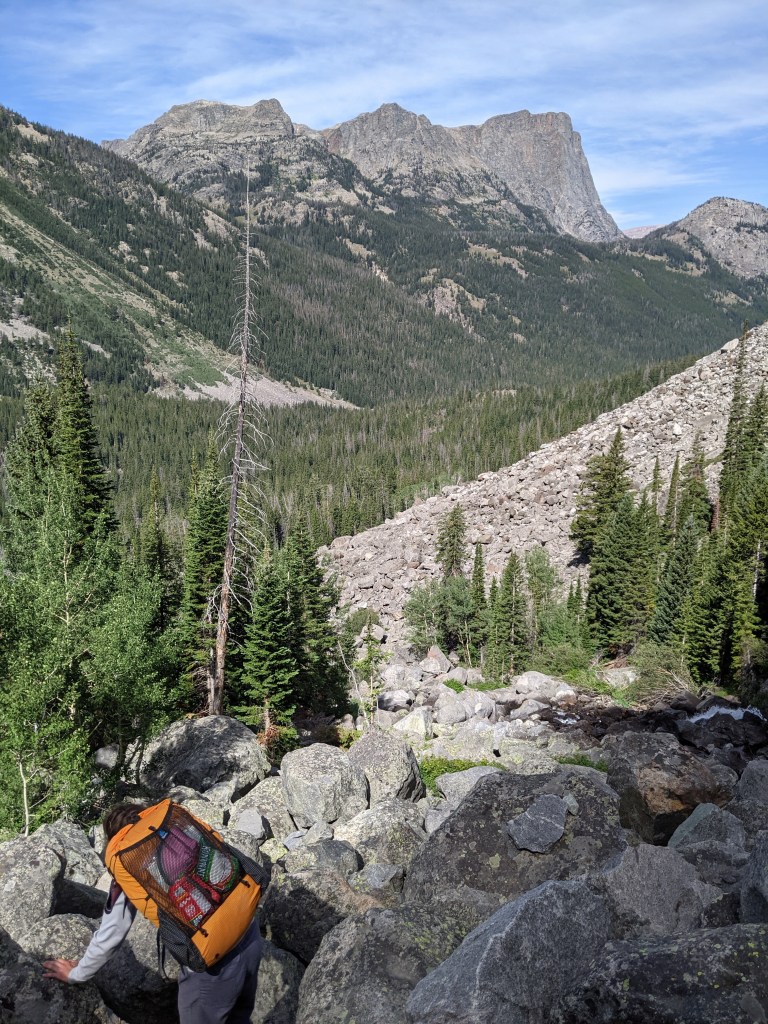 It took us five hours to hike/climb/boulder from the food stash to the campsite the day before but taking the Baby Route, we made it down in four hours. I will say though, hiking straight up the boulderfield on the face of the mountain made for a much more spectacular view of the Green River Valley than being closer to Tourist Creek.