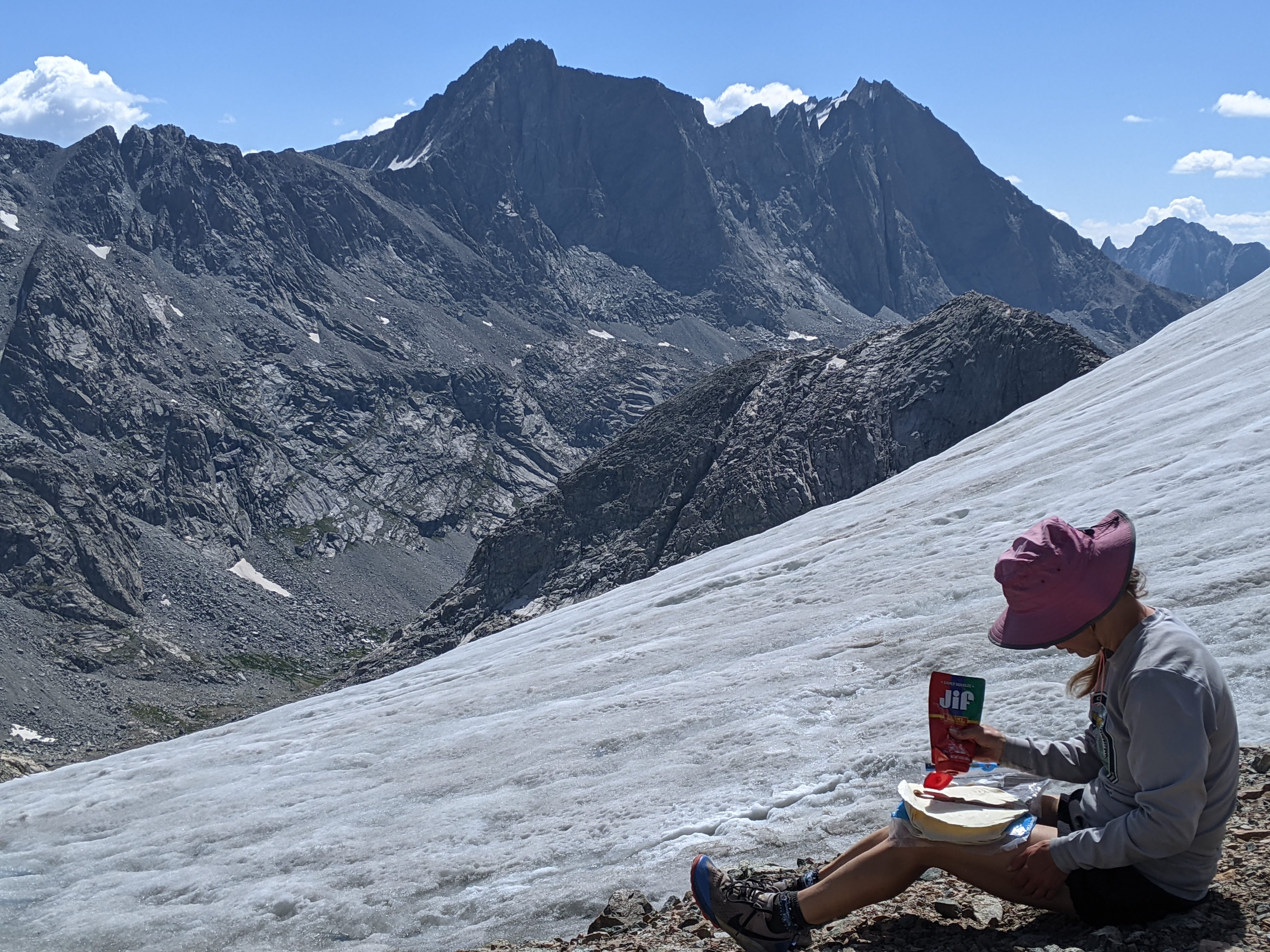 My original plan had us taking the Glacier Trail to the Highline Trail and then the Titcomb Basin Trail but as Eva’s pinky toes were blistered and we were already doing insanely long days, Craig scoured the map for a cut-off option. I knew about the Knapsack Col route but was admittedly a bit intimidated by its steep terrain and potential glaciers. So we started asking everyone we saw hiking if they knew about or had done the Knapsack Col and we learned it was a popular CDT variant that shouldn’t be too hard. It would also cut-off significant mileage.