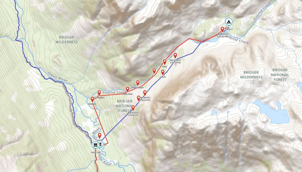 Day Three (8/10/21): Upper Green River Lake to Tourist Creek and up Tourist Creek