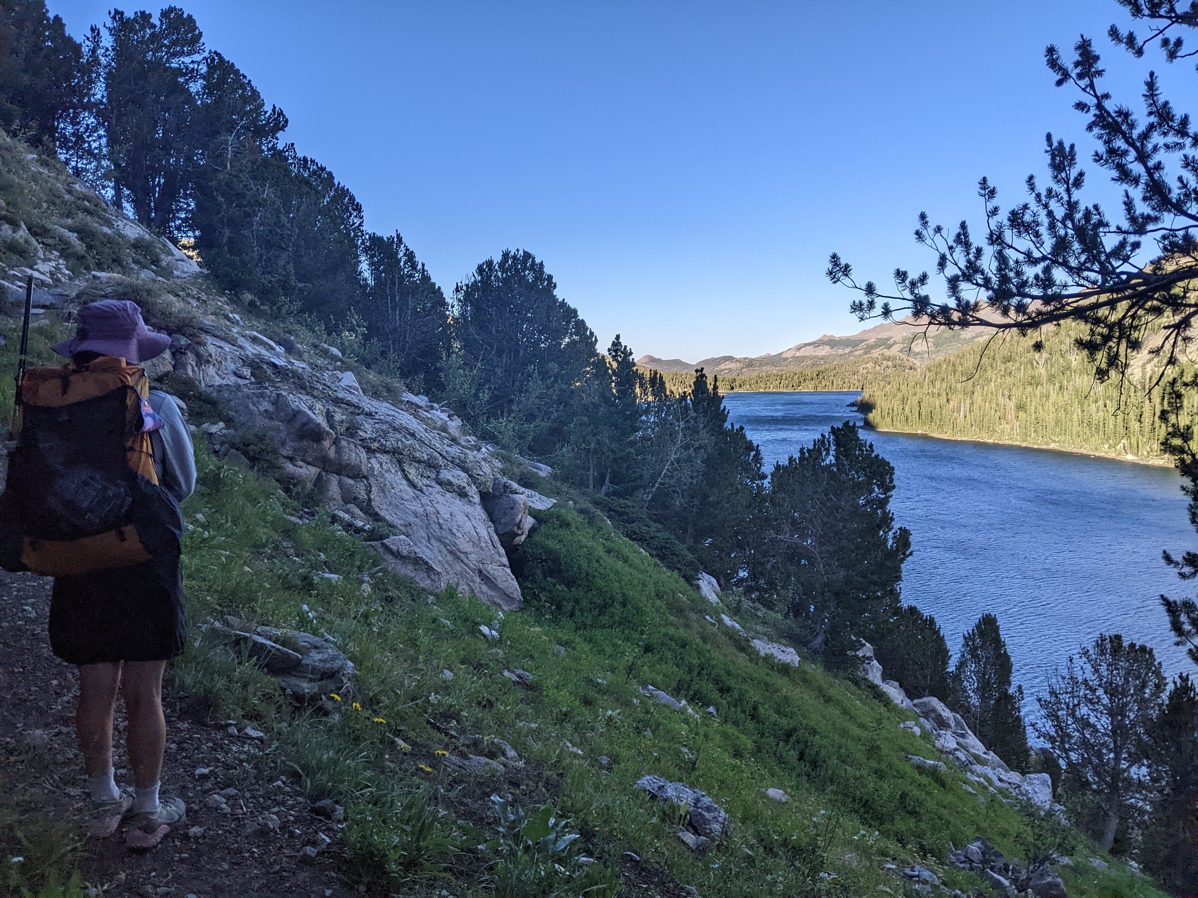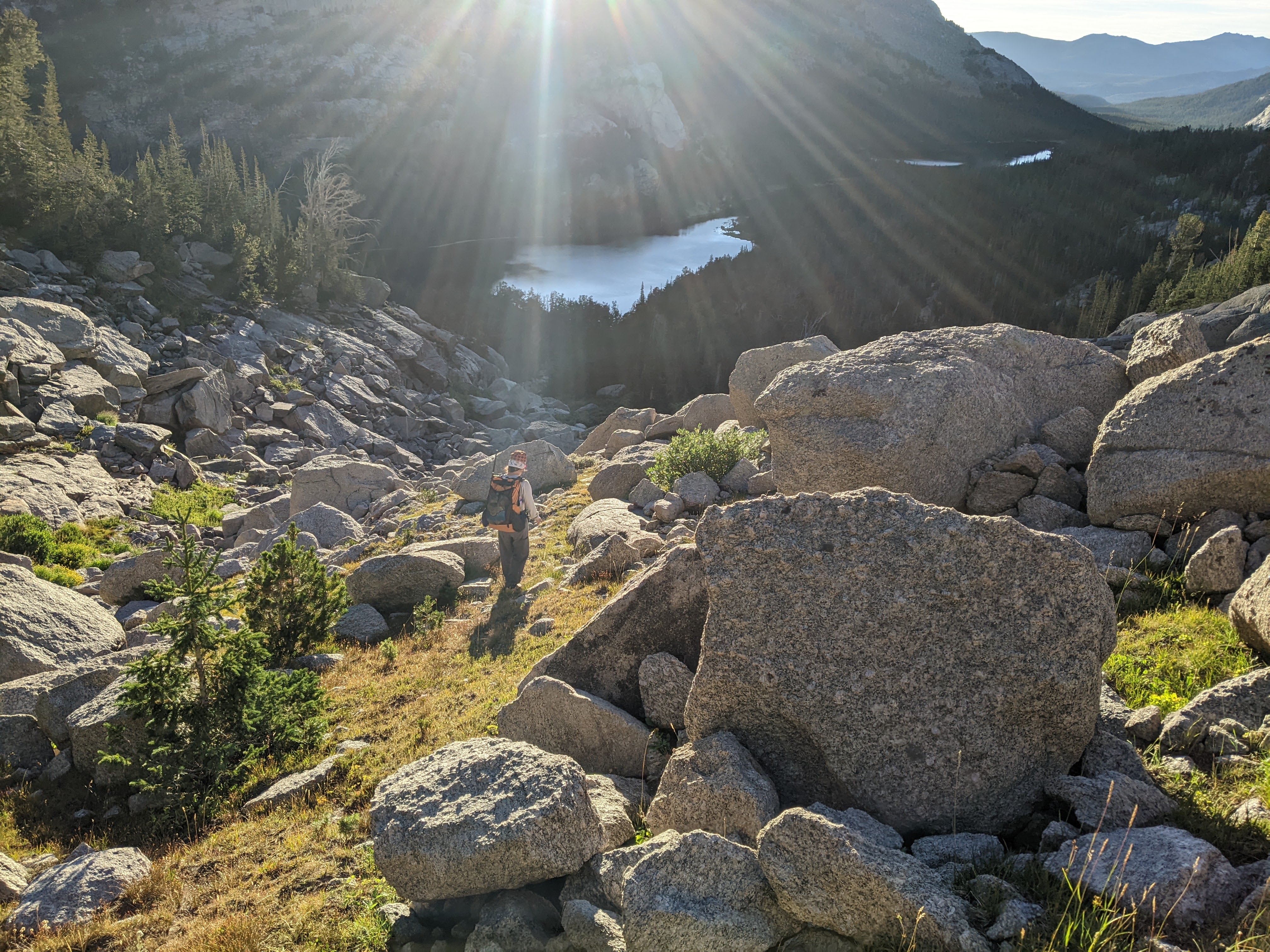 View down to Lower Cathedral Lake and out to Shoshone Lake. I’ve been kinda obsessed with getting to Shoshone Lake (perhaps because my cousins had a dog named Shoshone when I was a kid) on both of these trips but it is far out of the way and I’d put it at the end of the itinerary on both trips so hasn’t happened yet because we run out of time (and interested because it’s down in the low mountains).