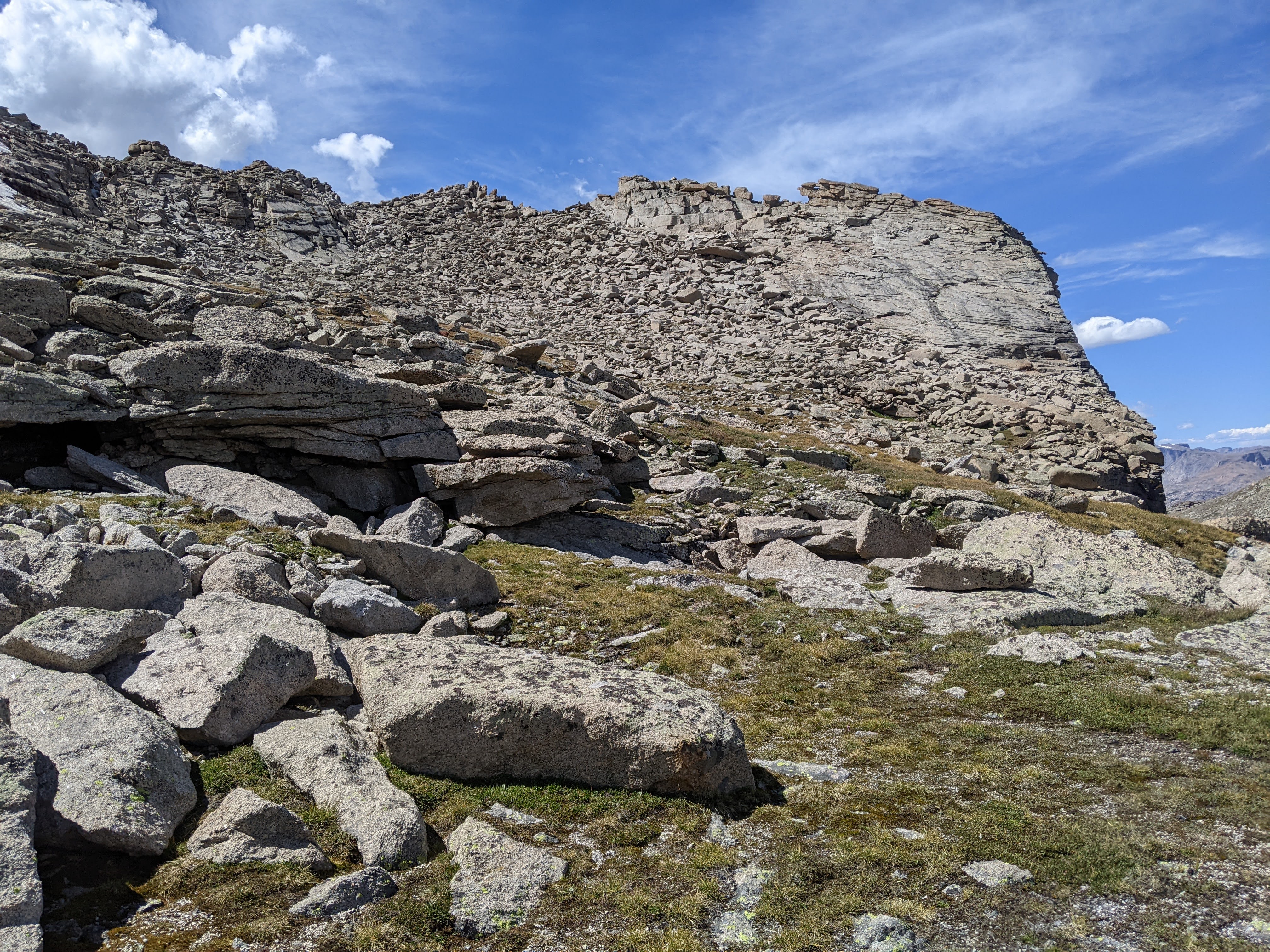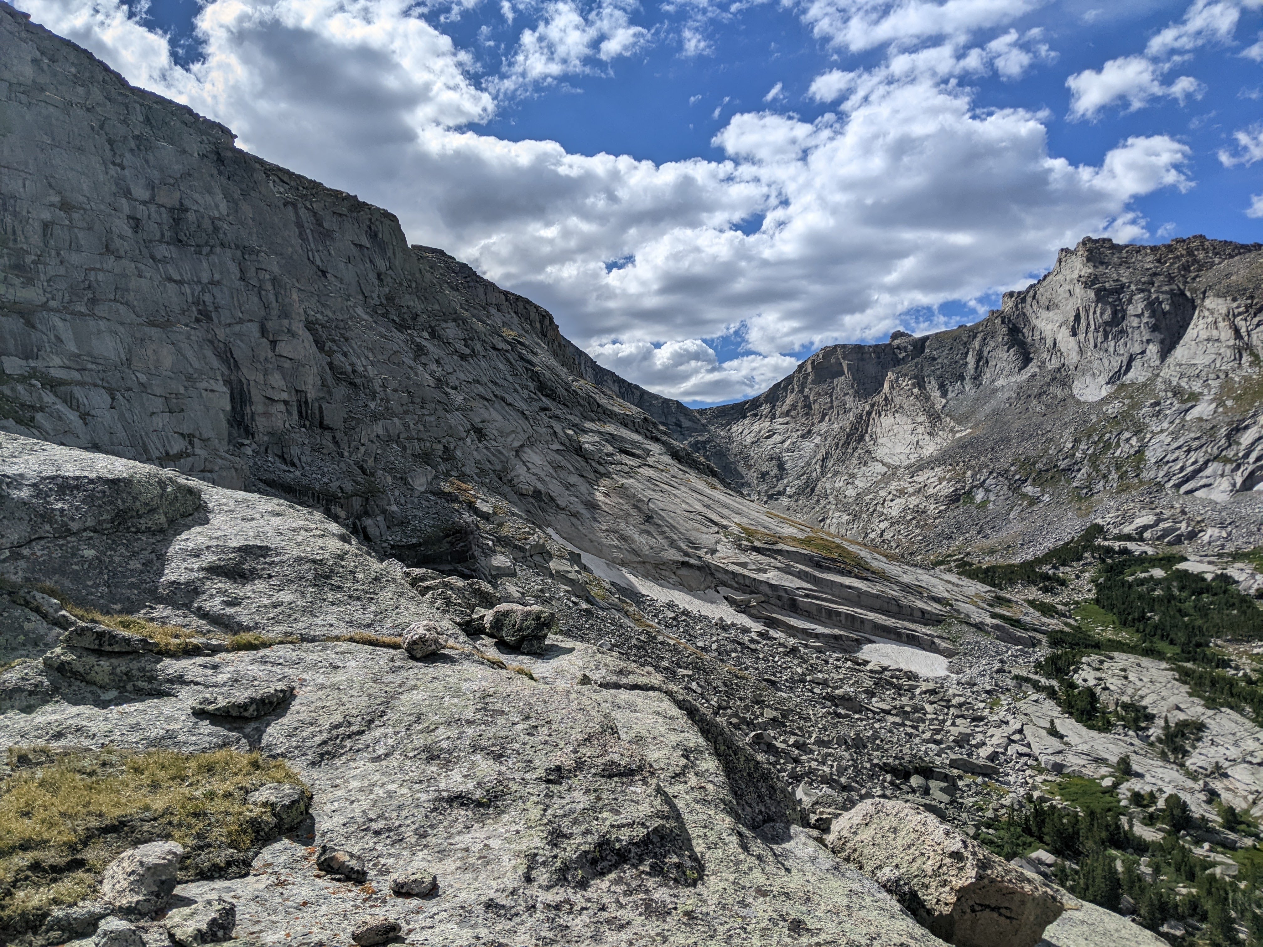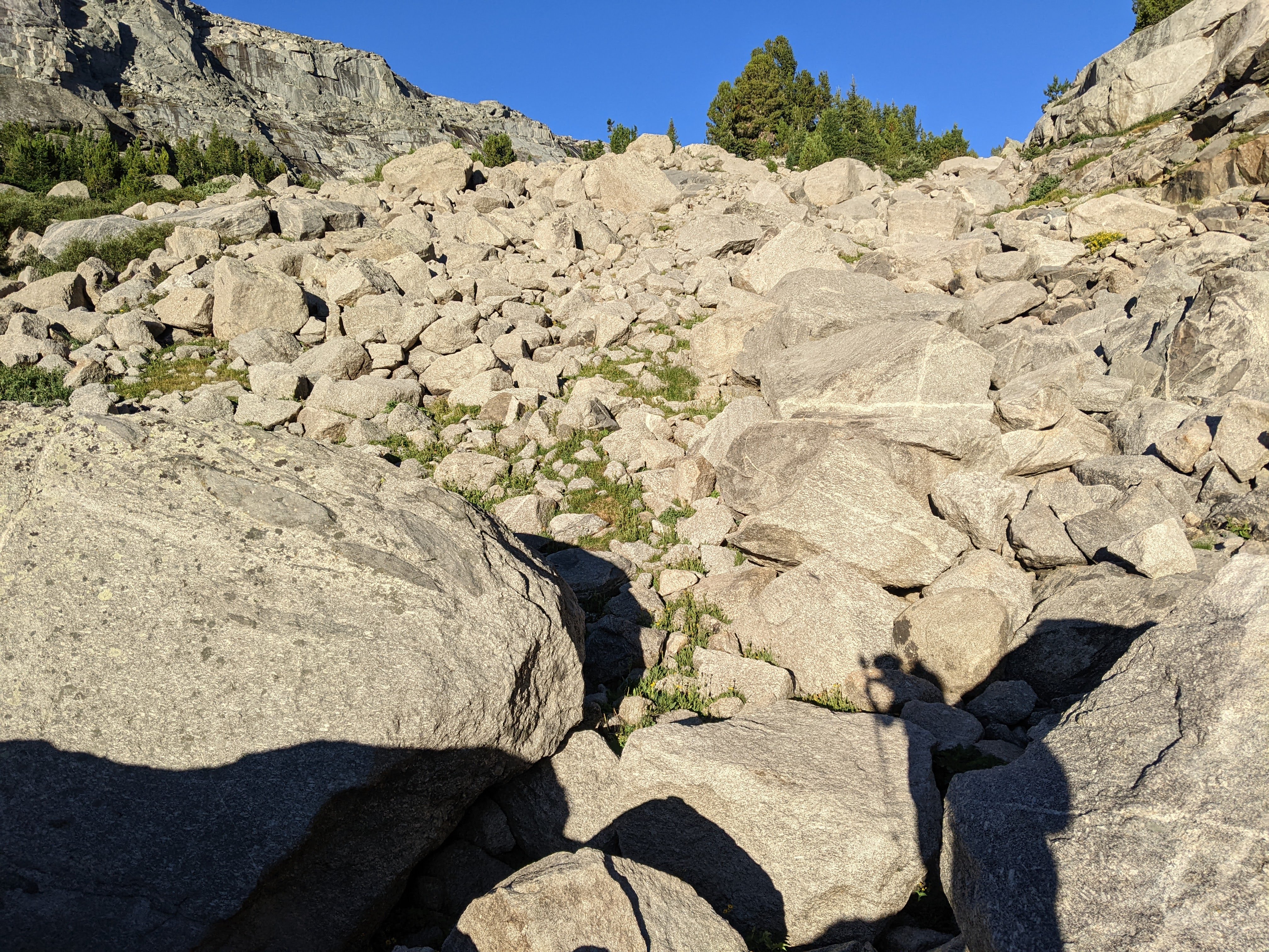 Looking back up at the upper boulderfield. If you are ascending this route, aim for that clump of trees.