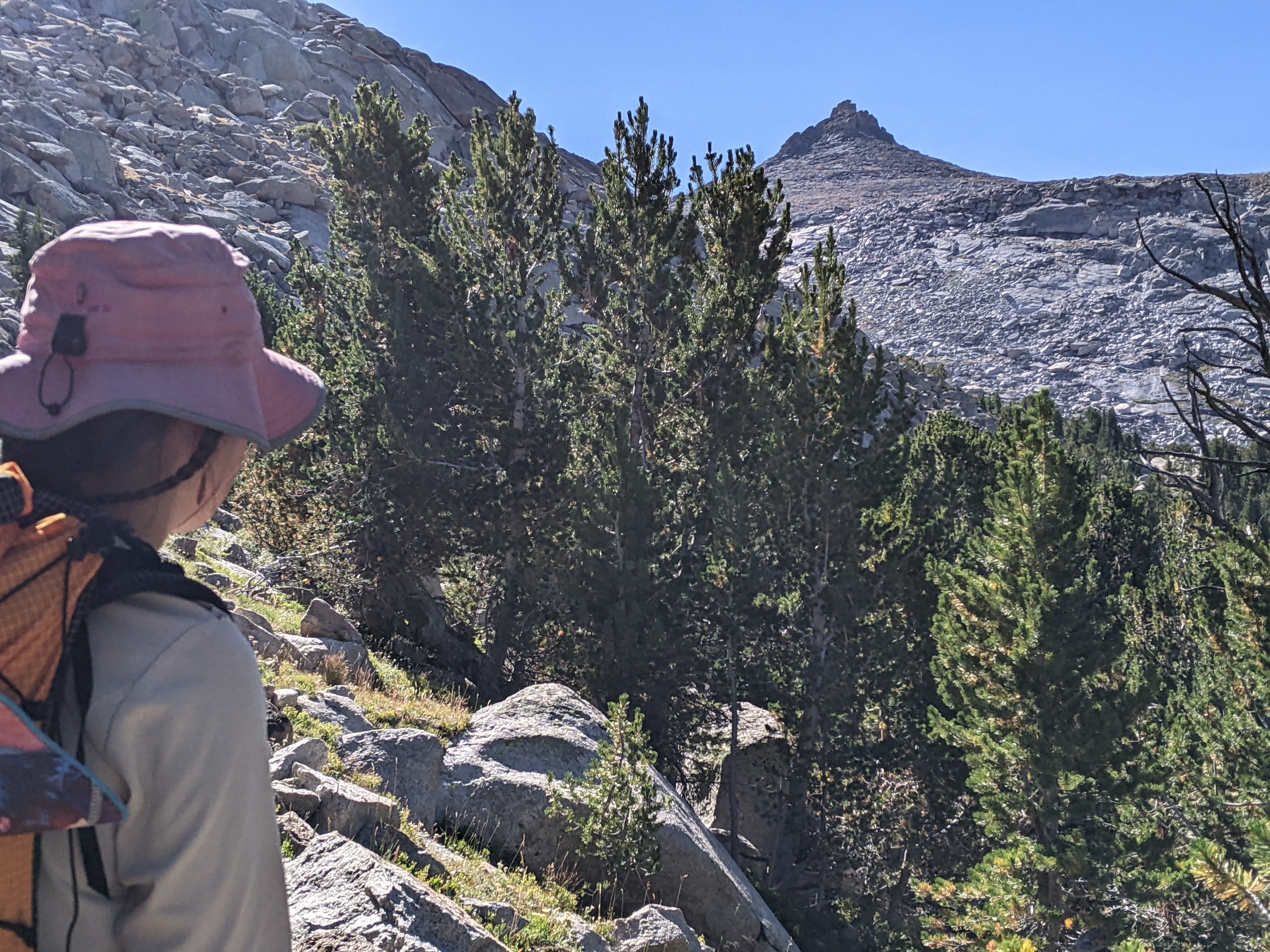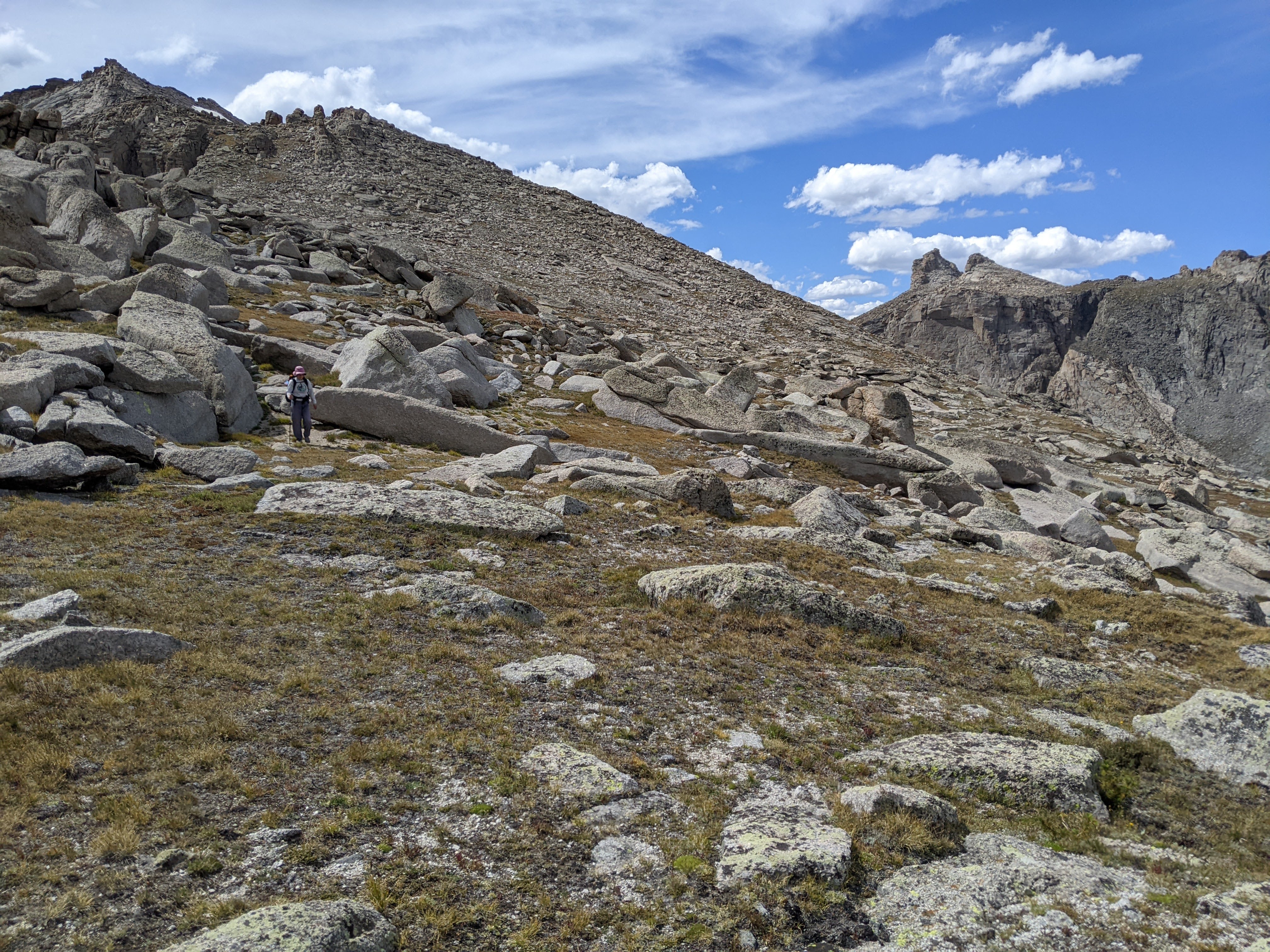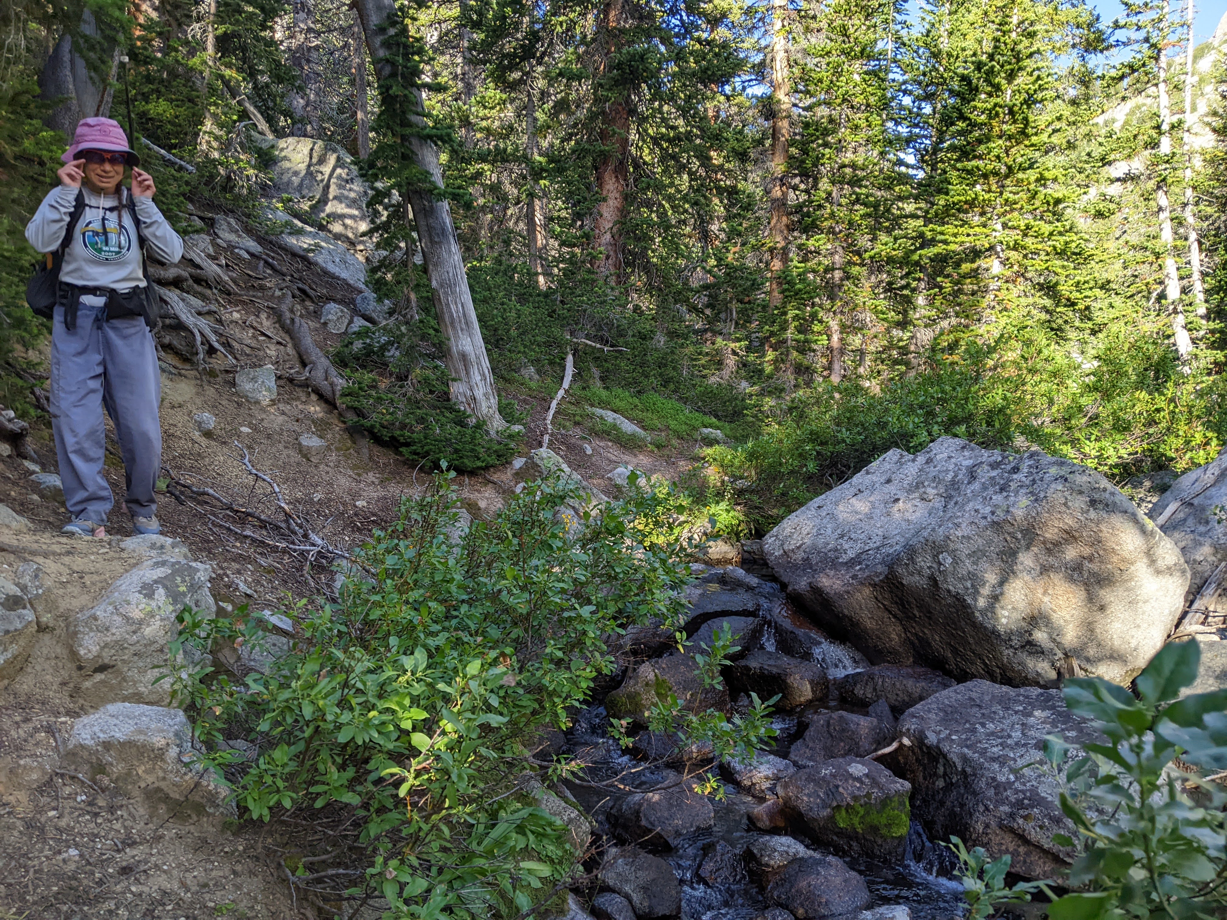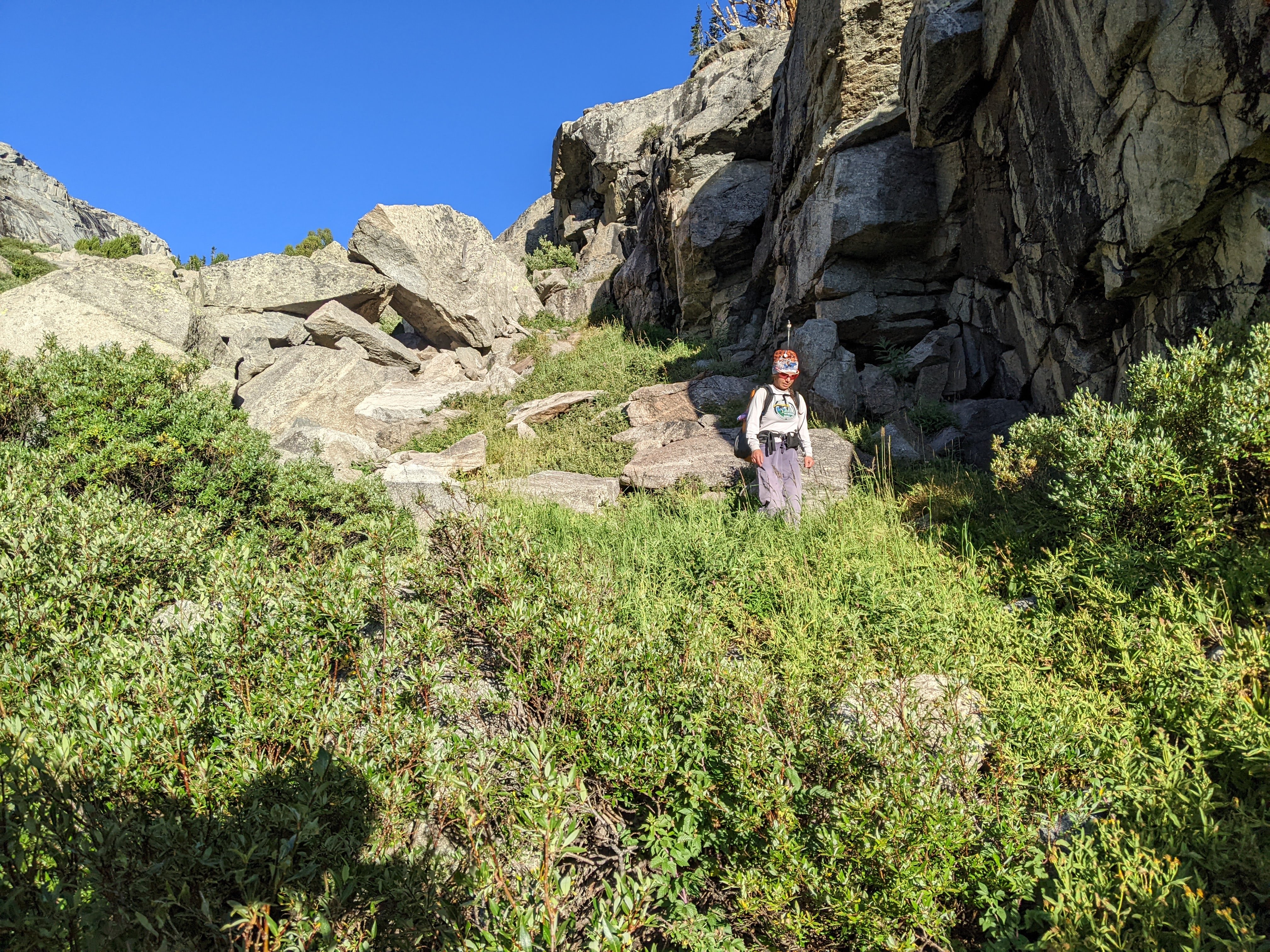Starting to catch the social trail on the south side of the creek when the boulderfield ran out.