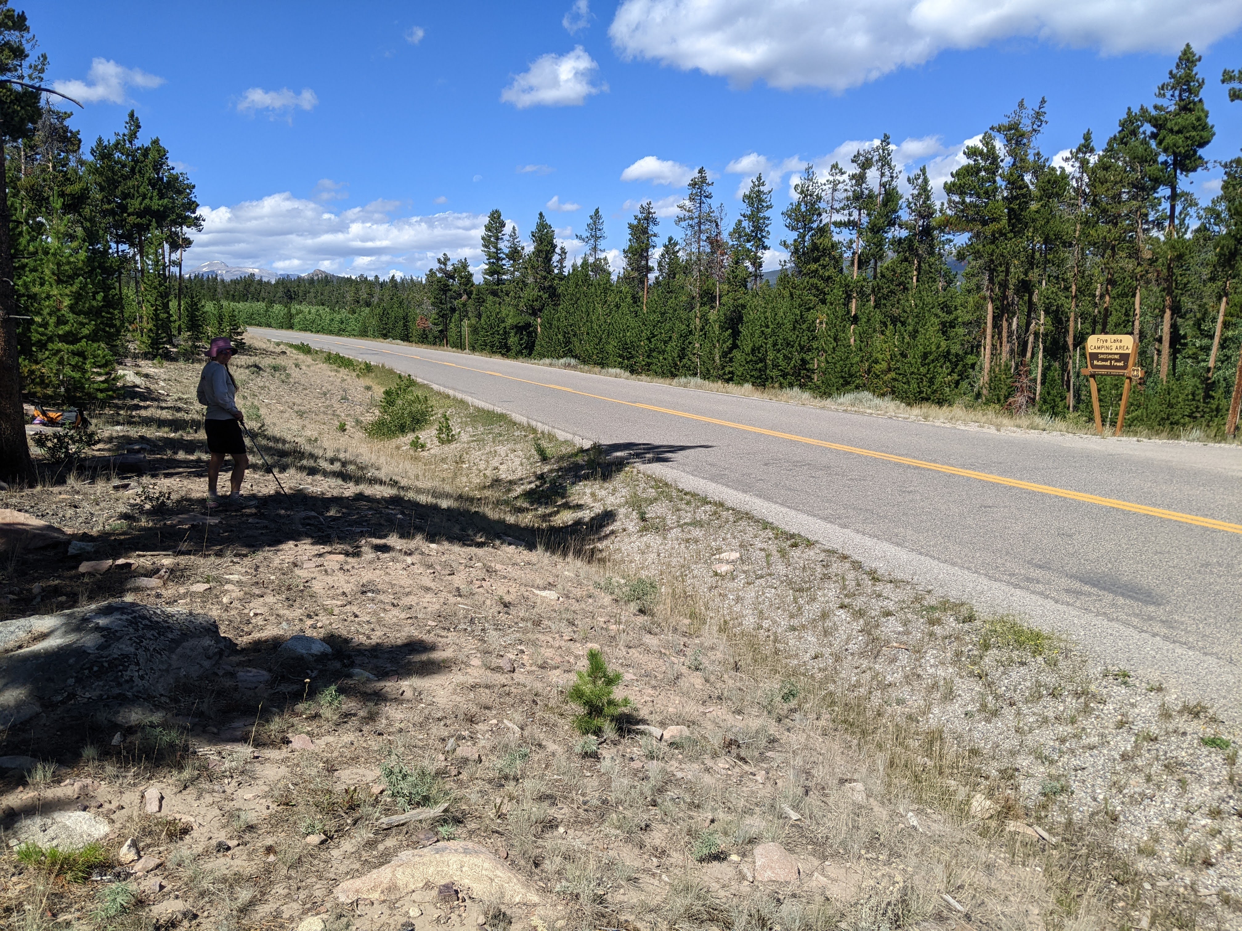 Me waiting on Louis Lake Road with Wind River Peak above my head.