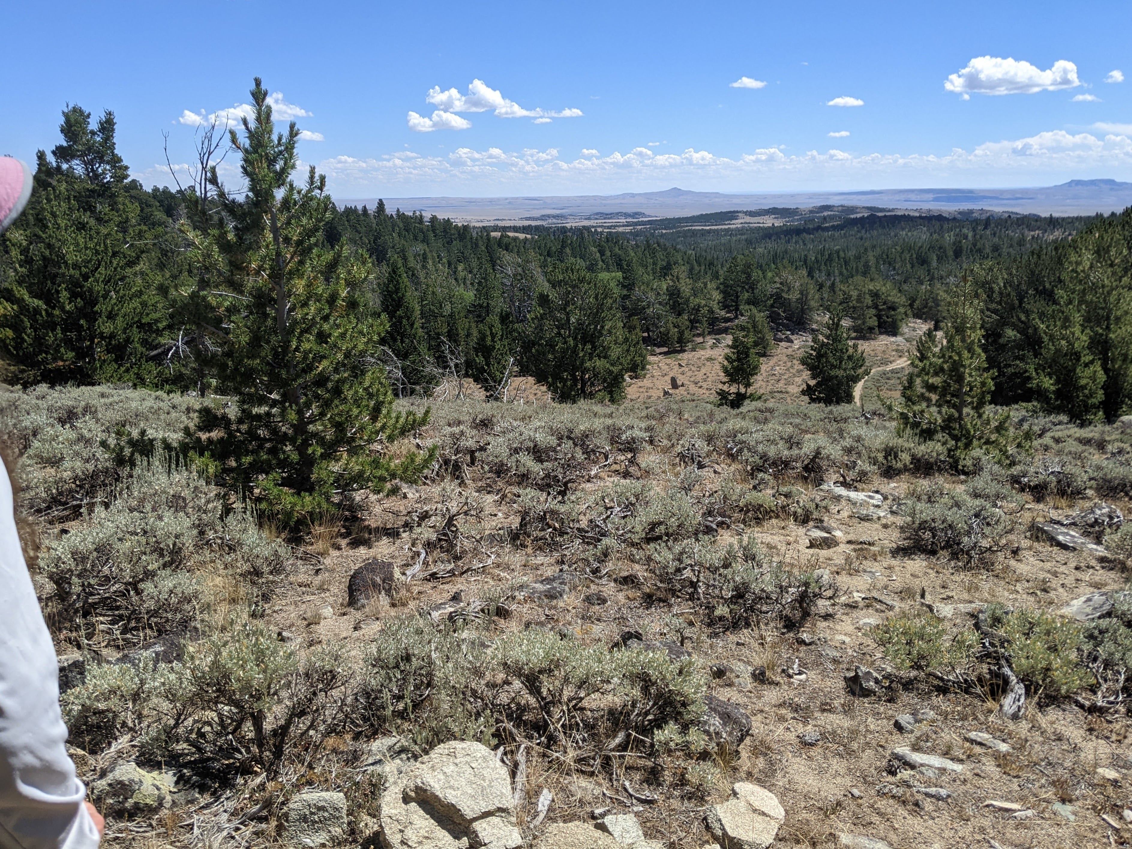 The first couple hours of hiking…sage brush, small trees, and occasional views out to the vast Wyoming landscape.